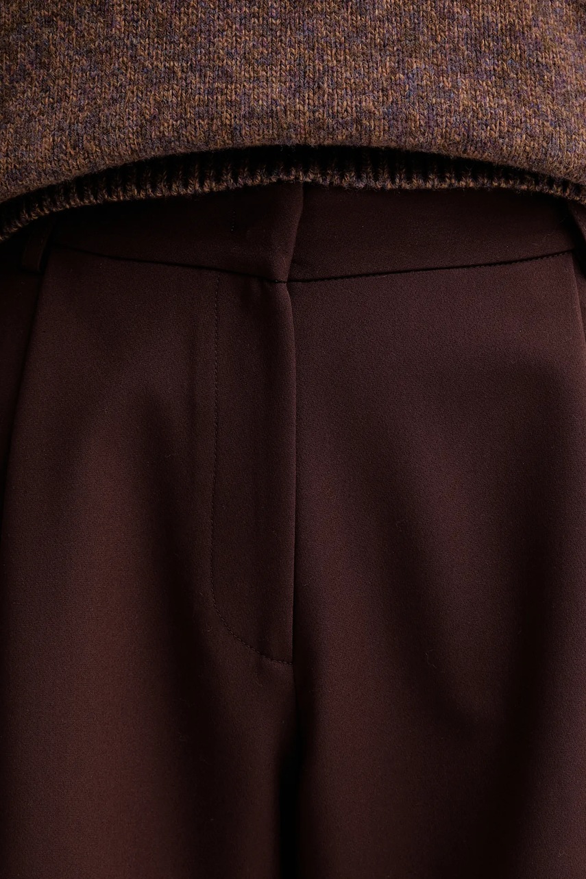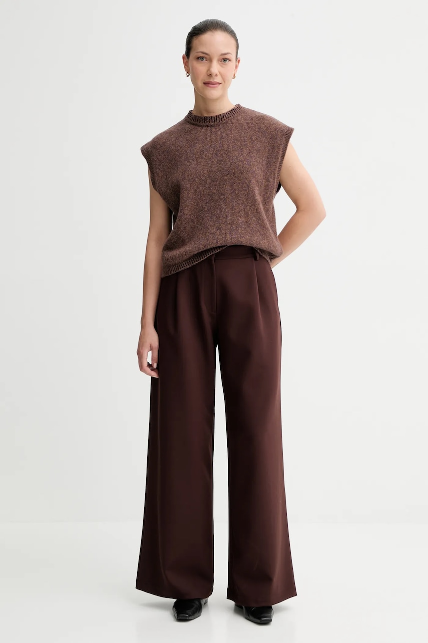 Sessun spodnie damskie kolor brązowy szerokie high waist 25107000