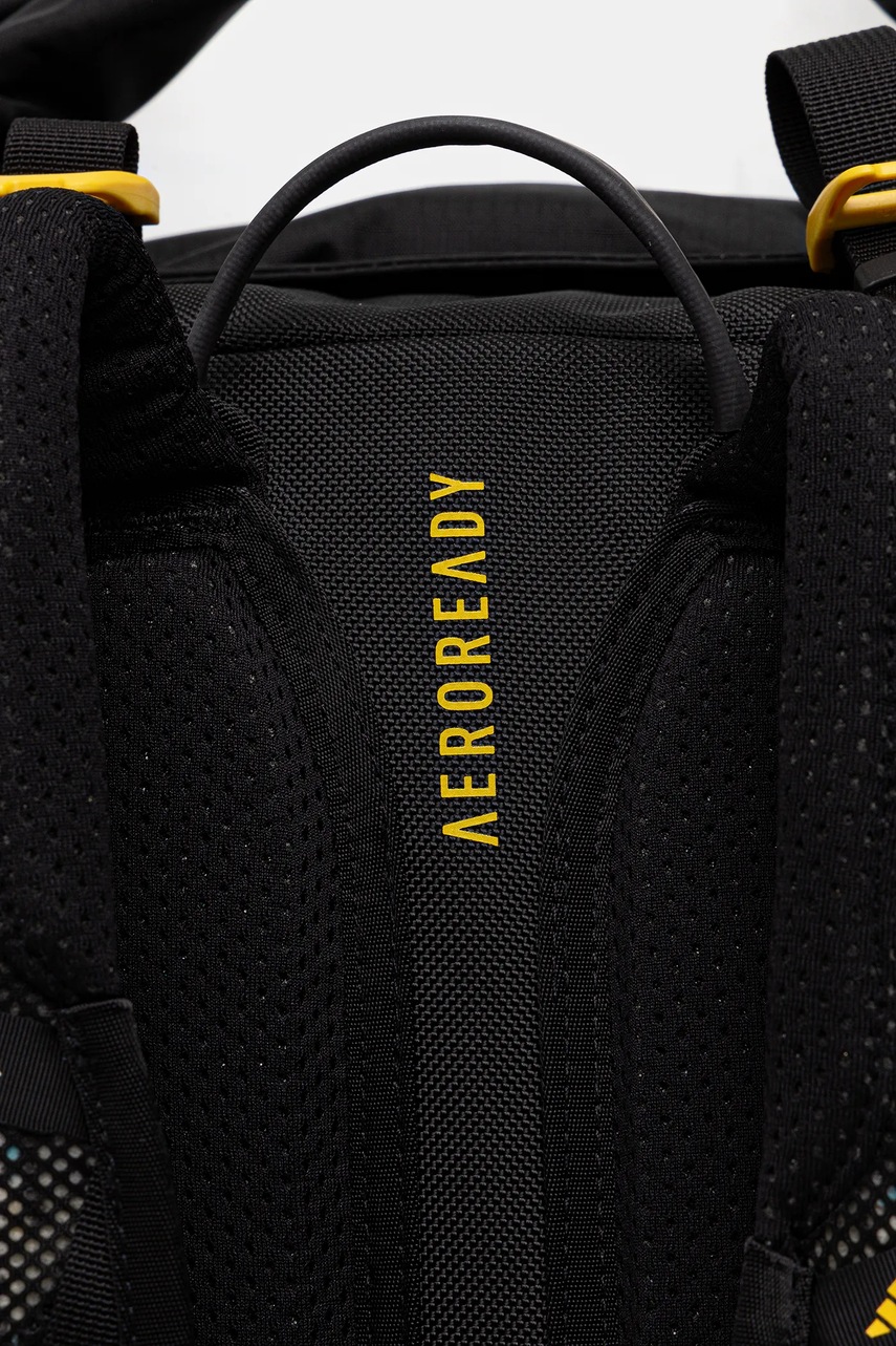 - Pasy naramienne oraz tylni panel plecaka wykonane zostały z materiału z systemem AEROREADY, który doskonale odprowadza wilgoć, pomagając zachować uczucie suchości w trakcie wędrówki.