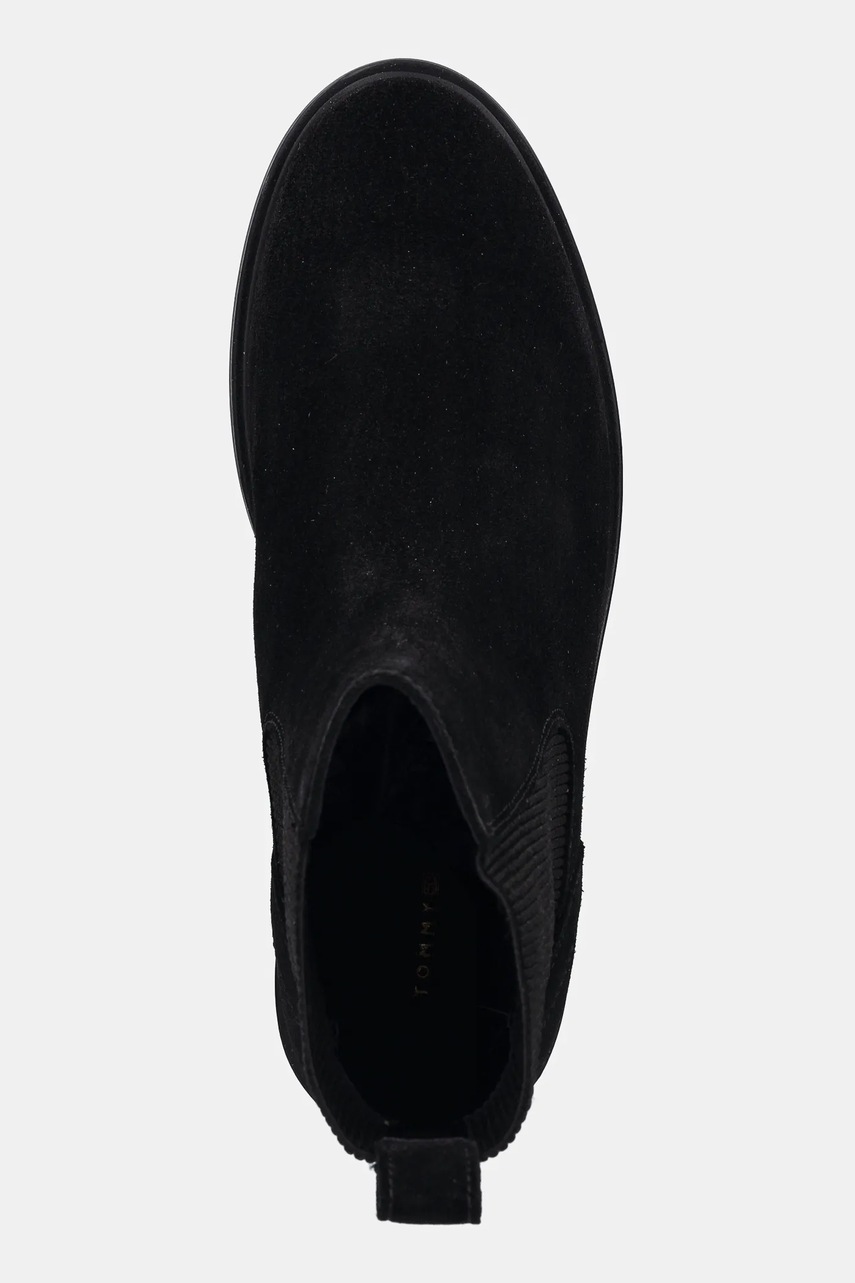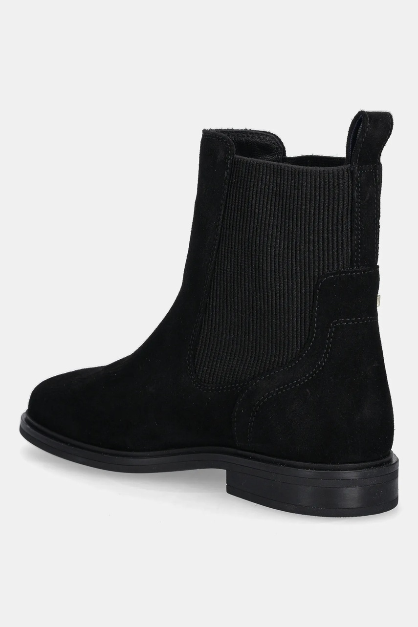 Tommy Hilfiger sztyblety zamszowe FLAG SUEDE CHELSEA BOOT damskie kolor czarny na płaskim obcasie FW0FW08780