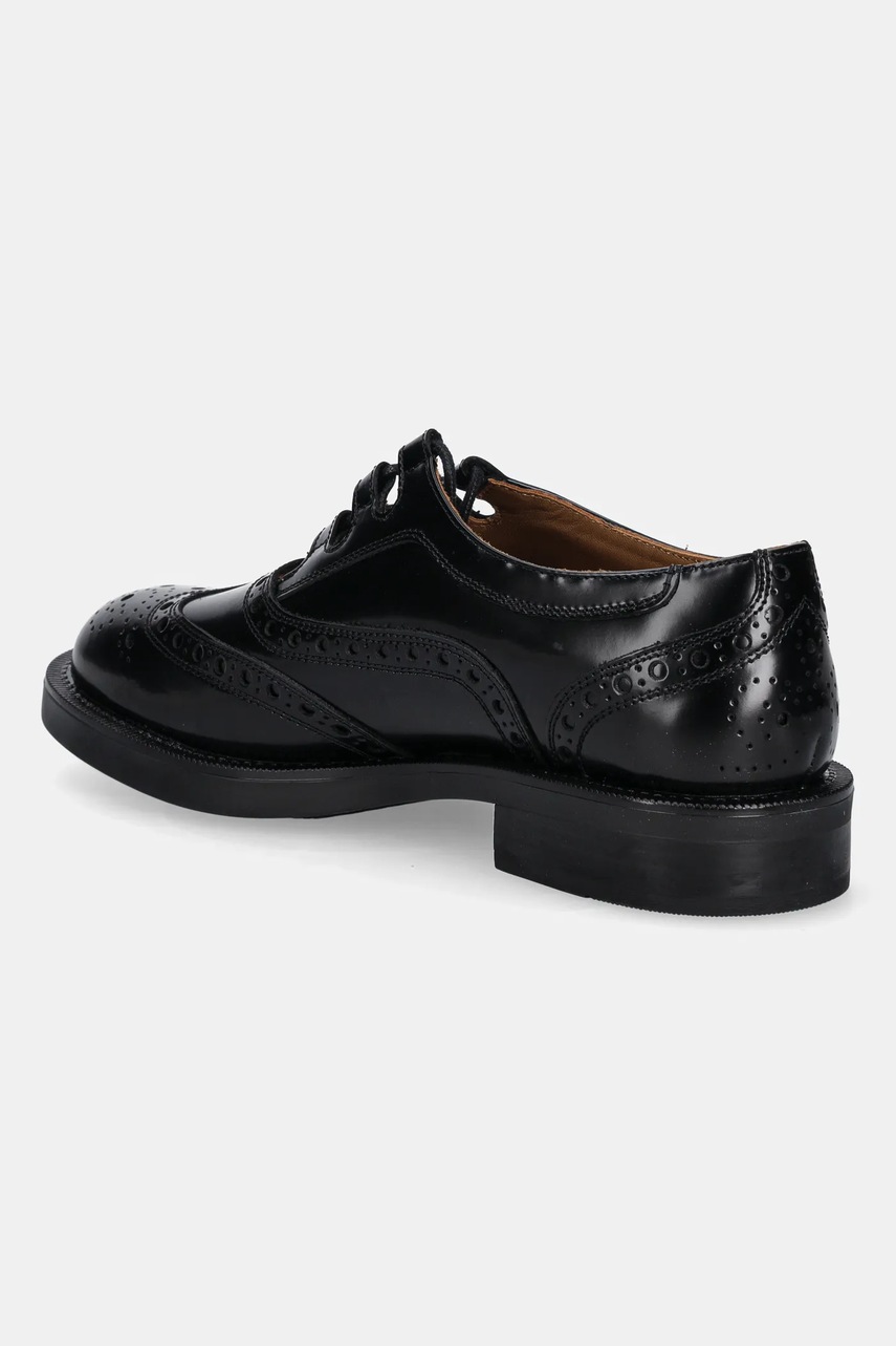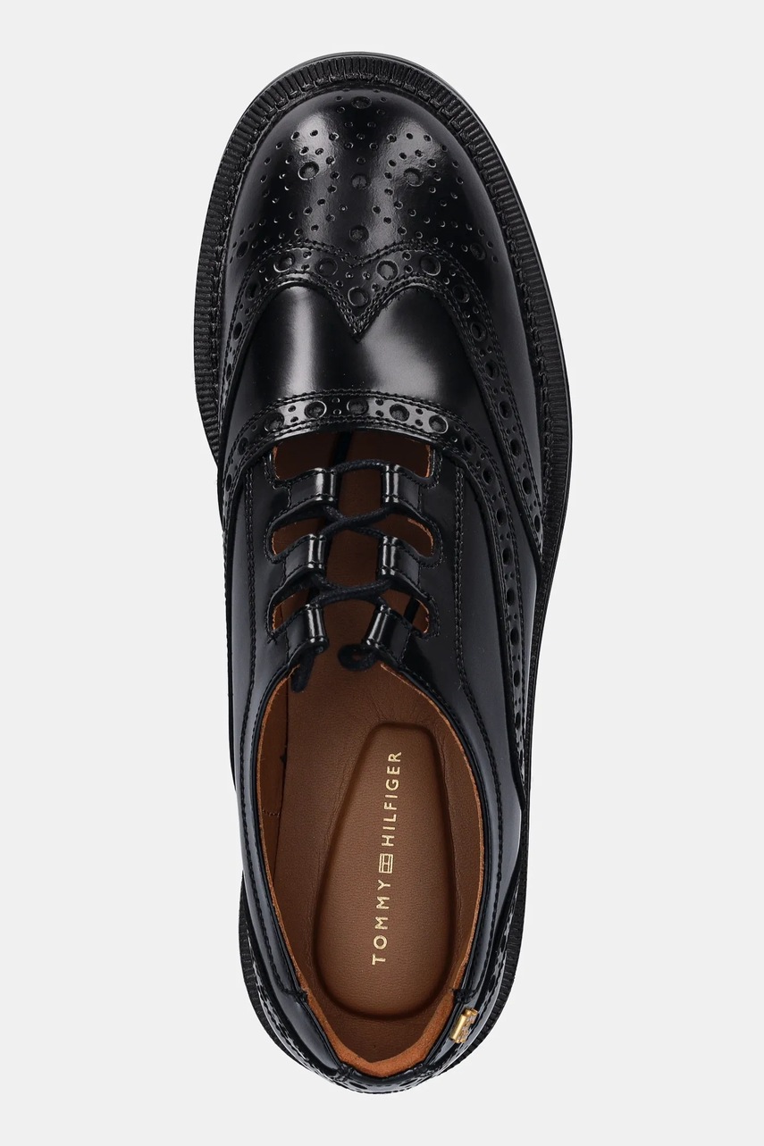 Tommy Hilfiger półbuty skórzane BROGUE LEATHER CUT-OUT SHOE damskie kolor czarny na płaskim obcasie FW0FW08842