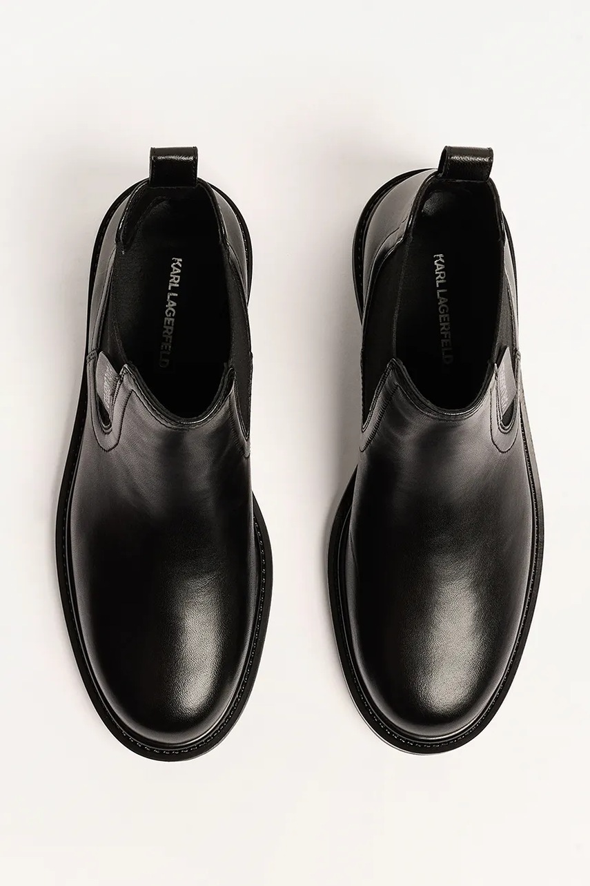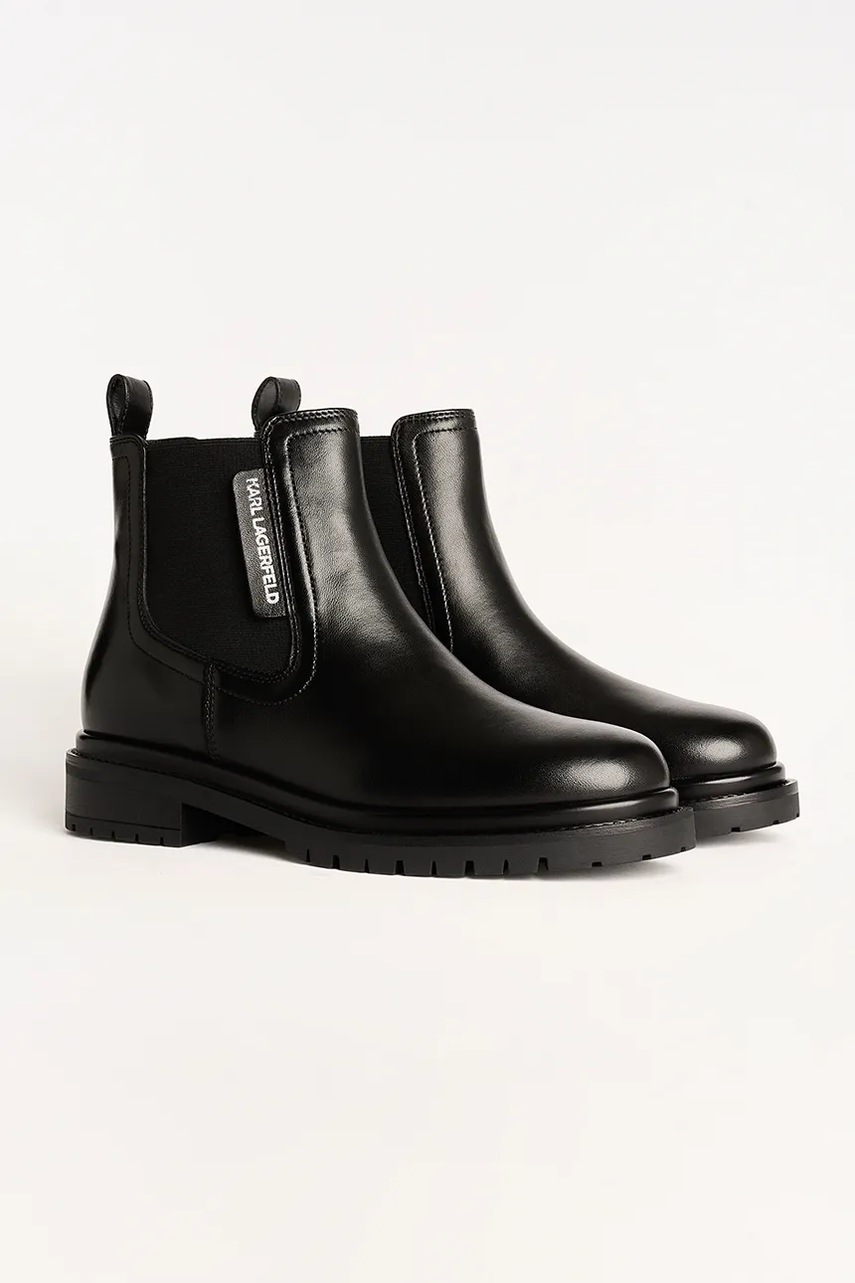 Karl Lagerfeld botki skórzane BINKY damskie kolor czarny na płaskim obcasie KL47545