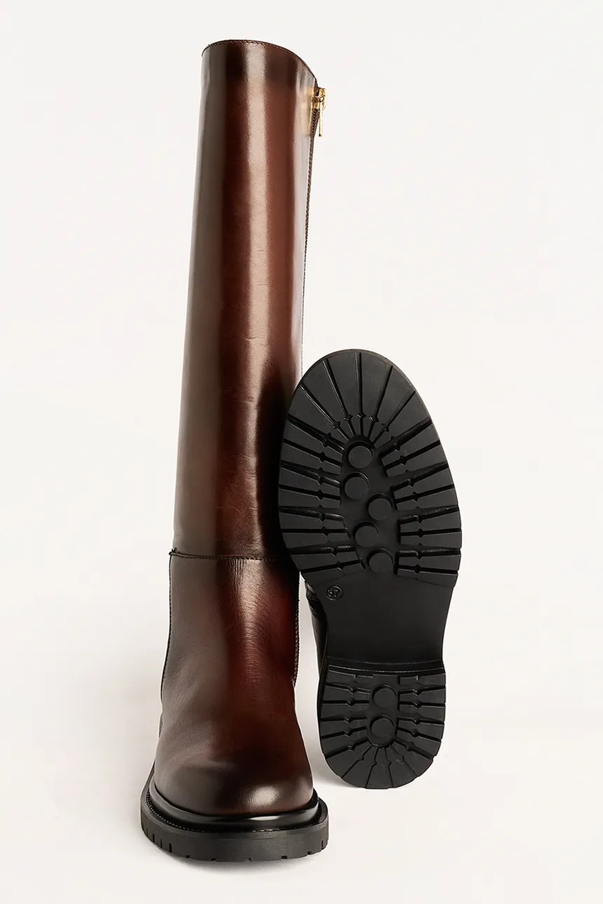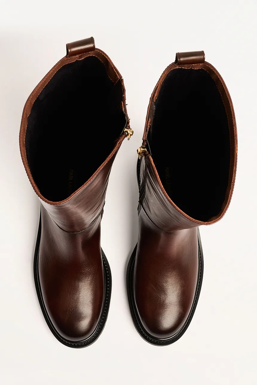 Karl Lagerfeld kozaki BINKY damskie kolor brązowy na płaskim obcasie KL47595