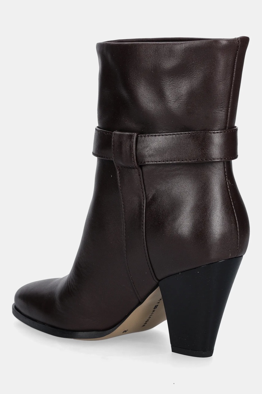 Tommy Hilfiger botki skórzane TH T-STRAP LEATHER POINTY BOOTIE damskie kolor brązowy na słupku FW0FW08984