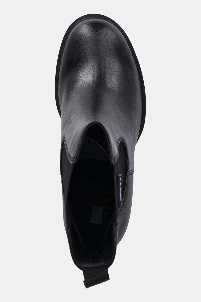 Tommy Jeans botki skórzane TJW LEATHER HEEL BOOT damskie kolor czarny na słupku lekko ocieplone EN0EN02831