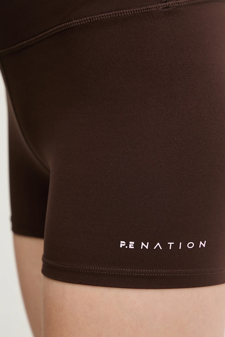 P.E Nation szorty Vita damskie kolor brązowy z aplikacją high waist 243S432
