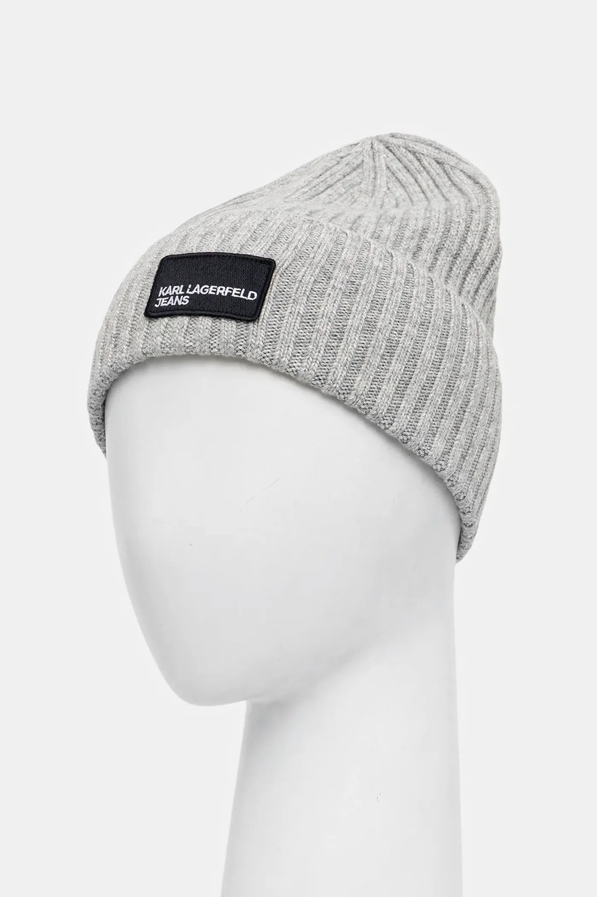 Karl Lagerfeld Jeans czapka z wełną kolor szary A3W33111