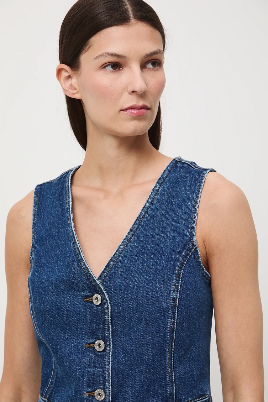 Medicine kamizelka jeansowa damska kolor niebieski jednorzędowa