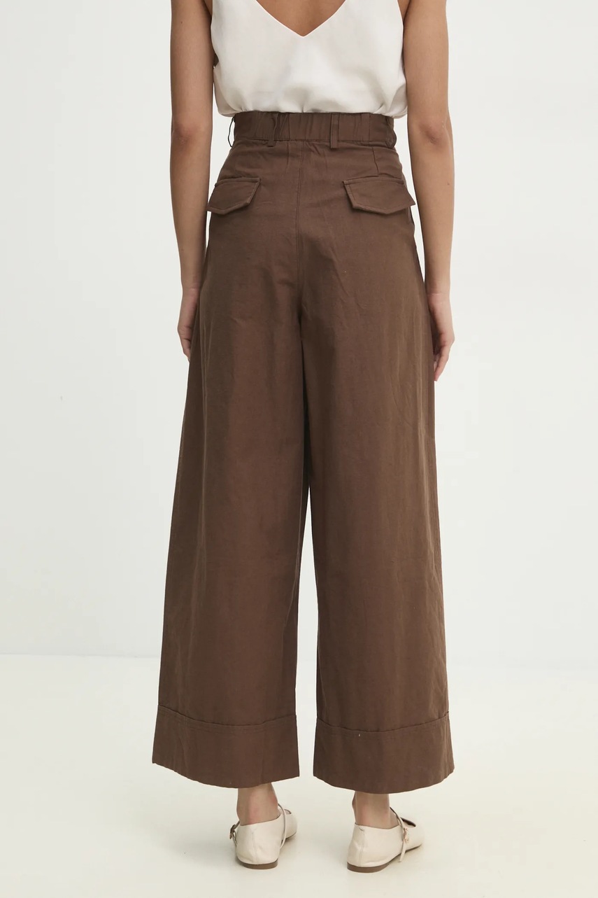 Answear.LAB spodnie bawełniane damskie kolor brązowy szerokie high waist