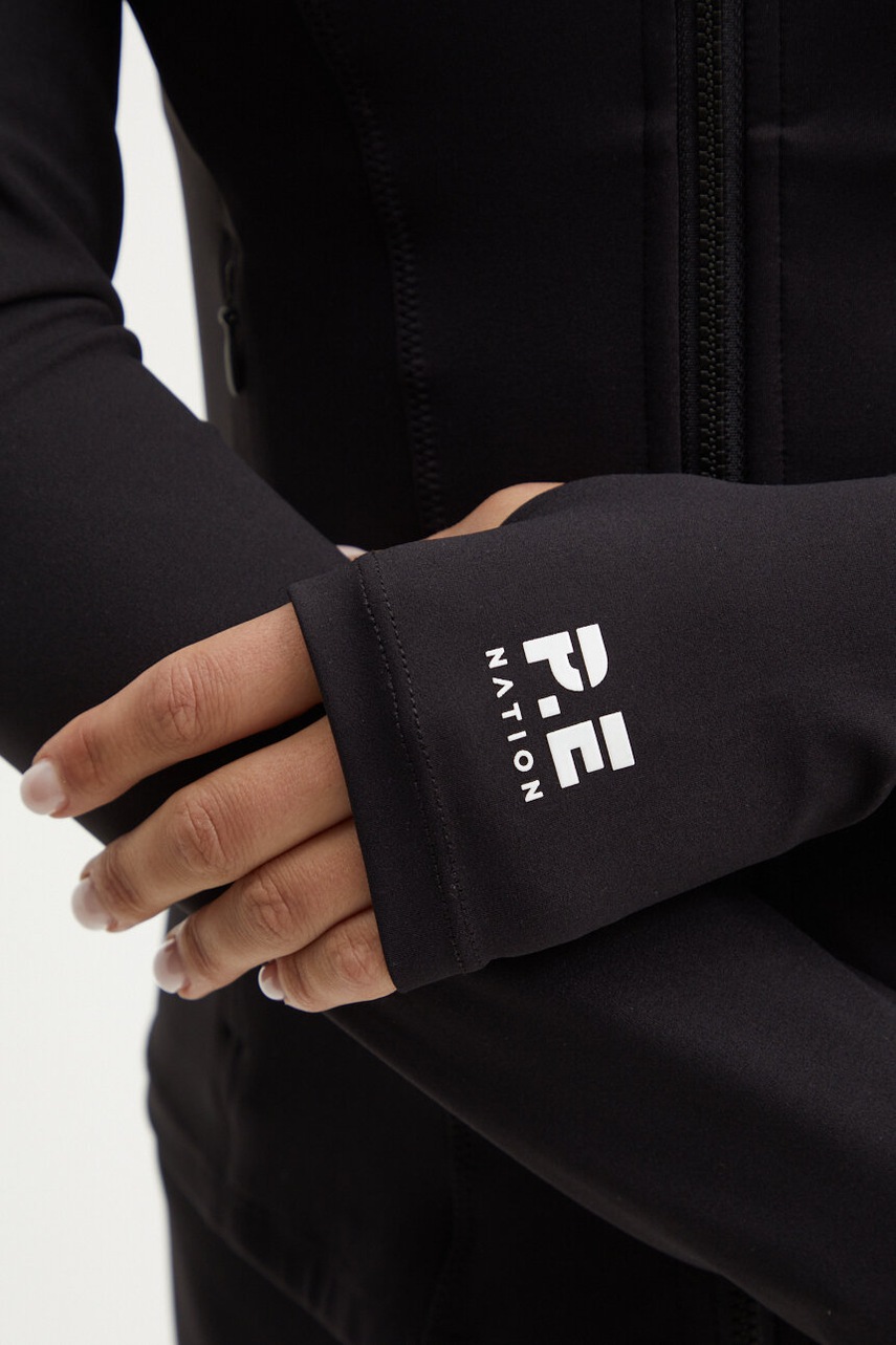 - U dołu rękawów otwory na kciuk, które osłaniają dłonie i zapobiegają podwijaniu się rękawów.