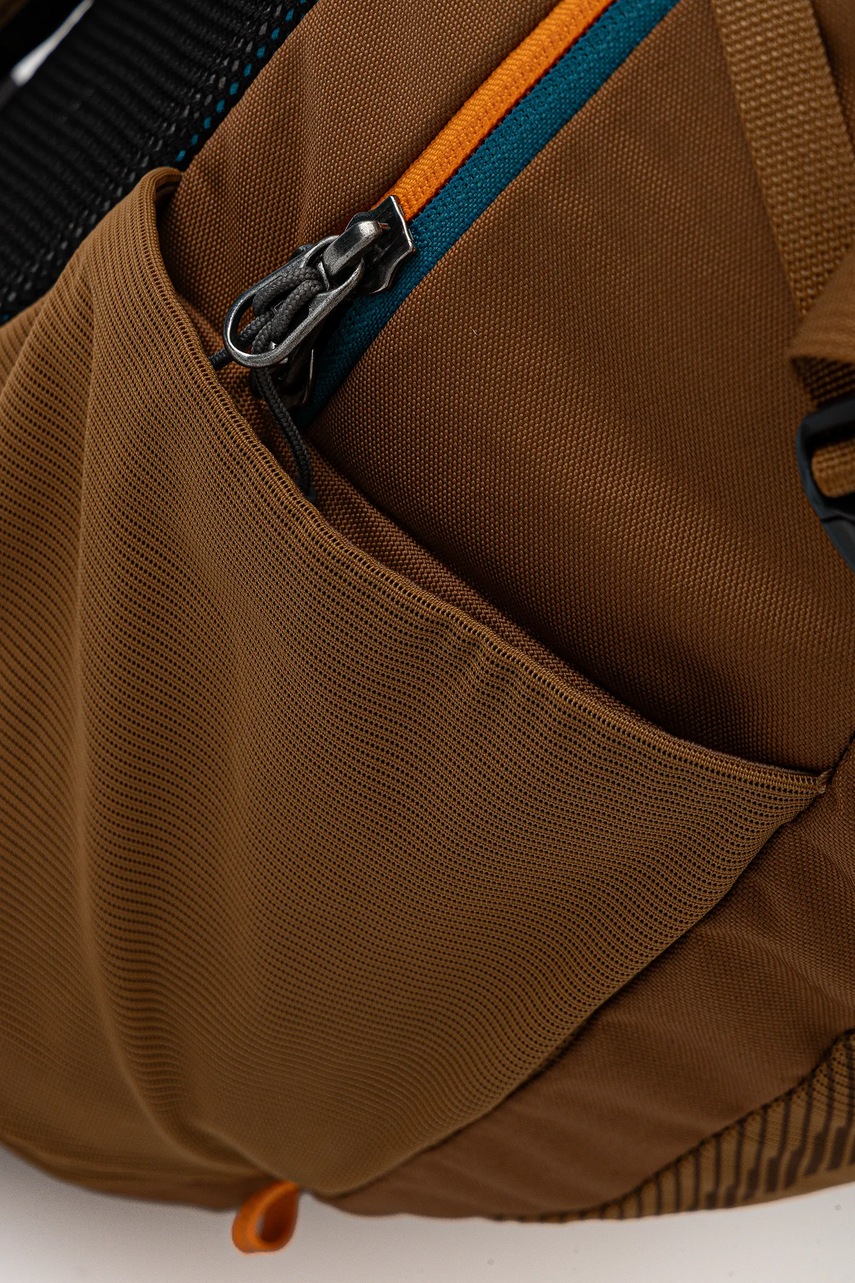 - Po obu stronach plecaka siateczkowe kieszenie do komfortowego przenoszenia butelek.