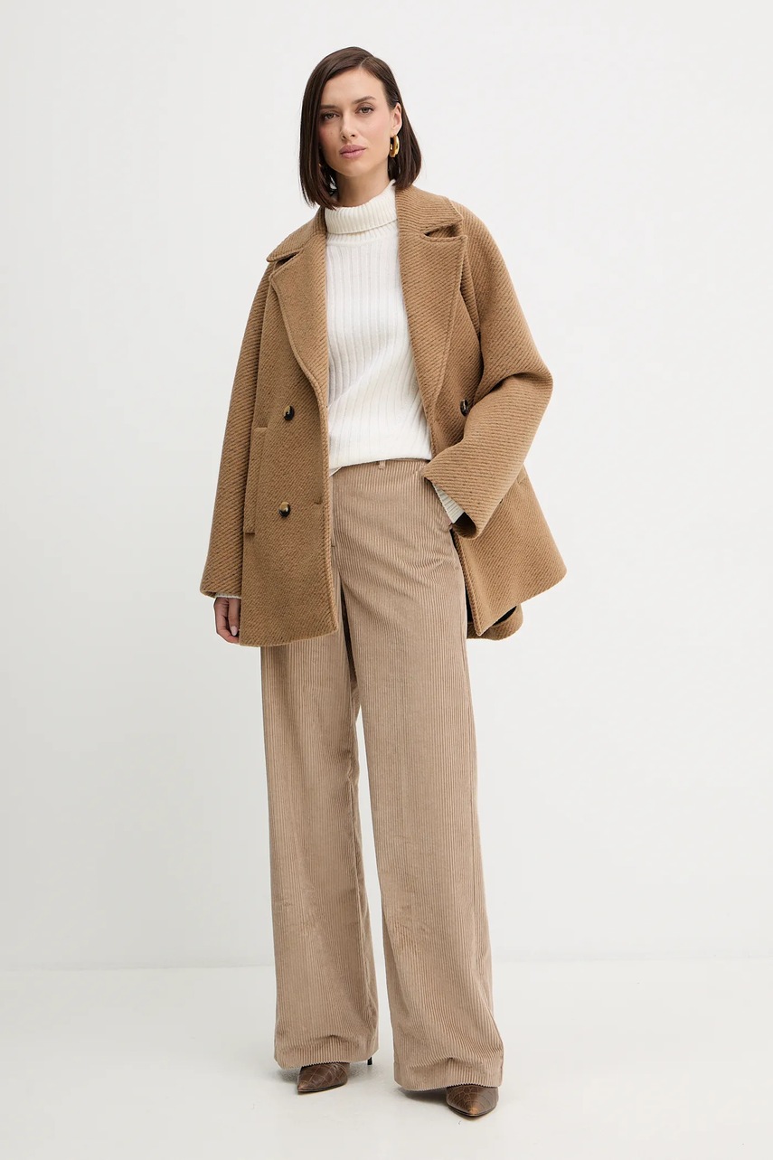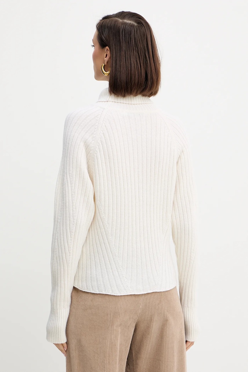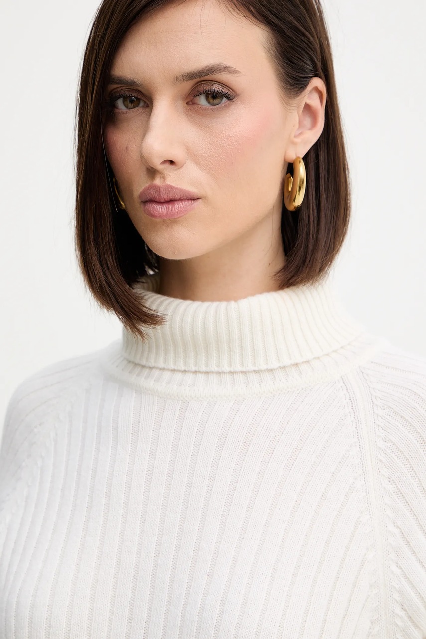 Simona Corsellini sweter wełniany damski kolor beżowy lekki z golfem A25CPMGG08S1