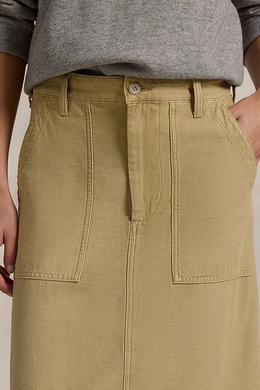 Polo Ralph Lauren spódnica bawełniana RICKY MD SK kolor beżowy midi rozkloszowana 211959051