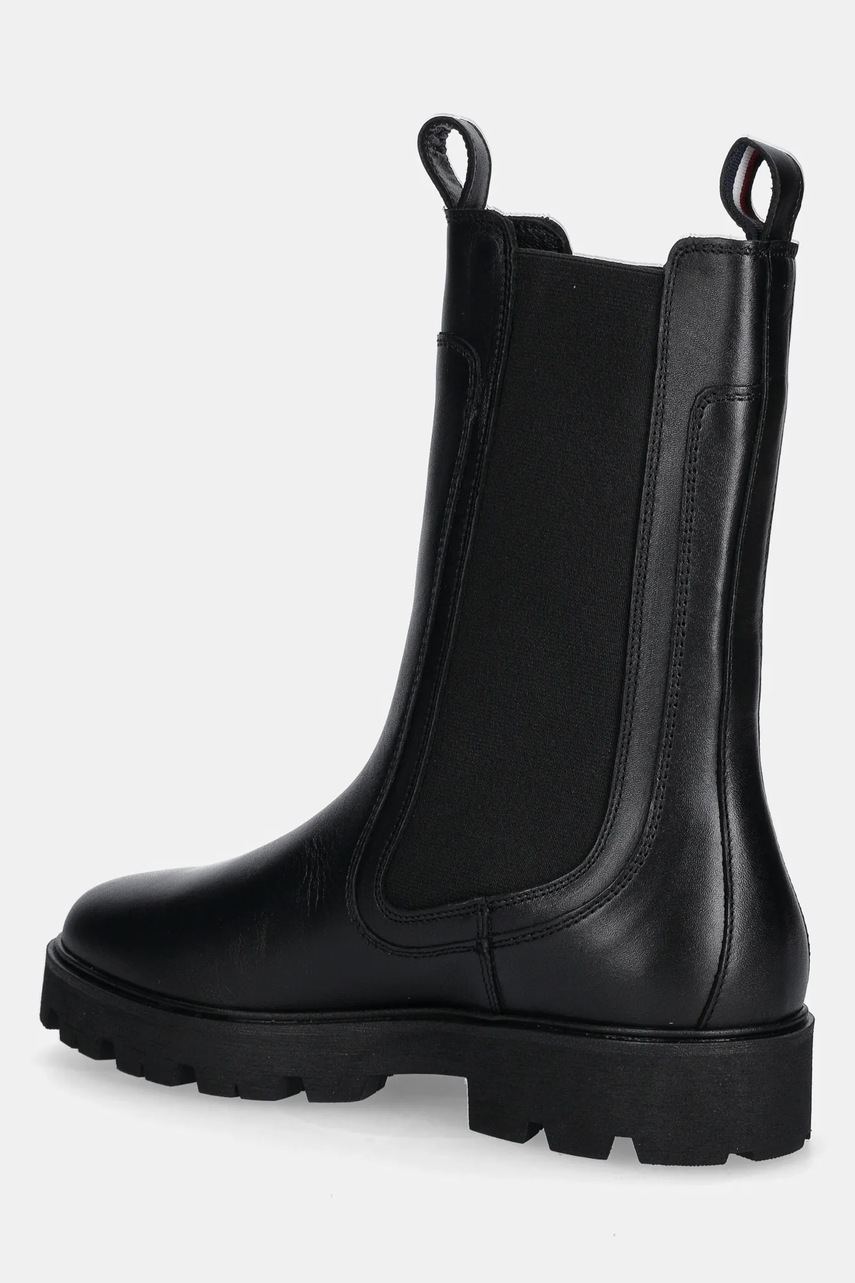 Tommy Hilfiger sztyblety skórzane TH LTHR MID CHELSEA damskie kolor czarny na płaskim obcasie FW0FW08770