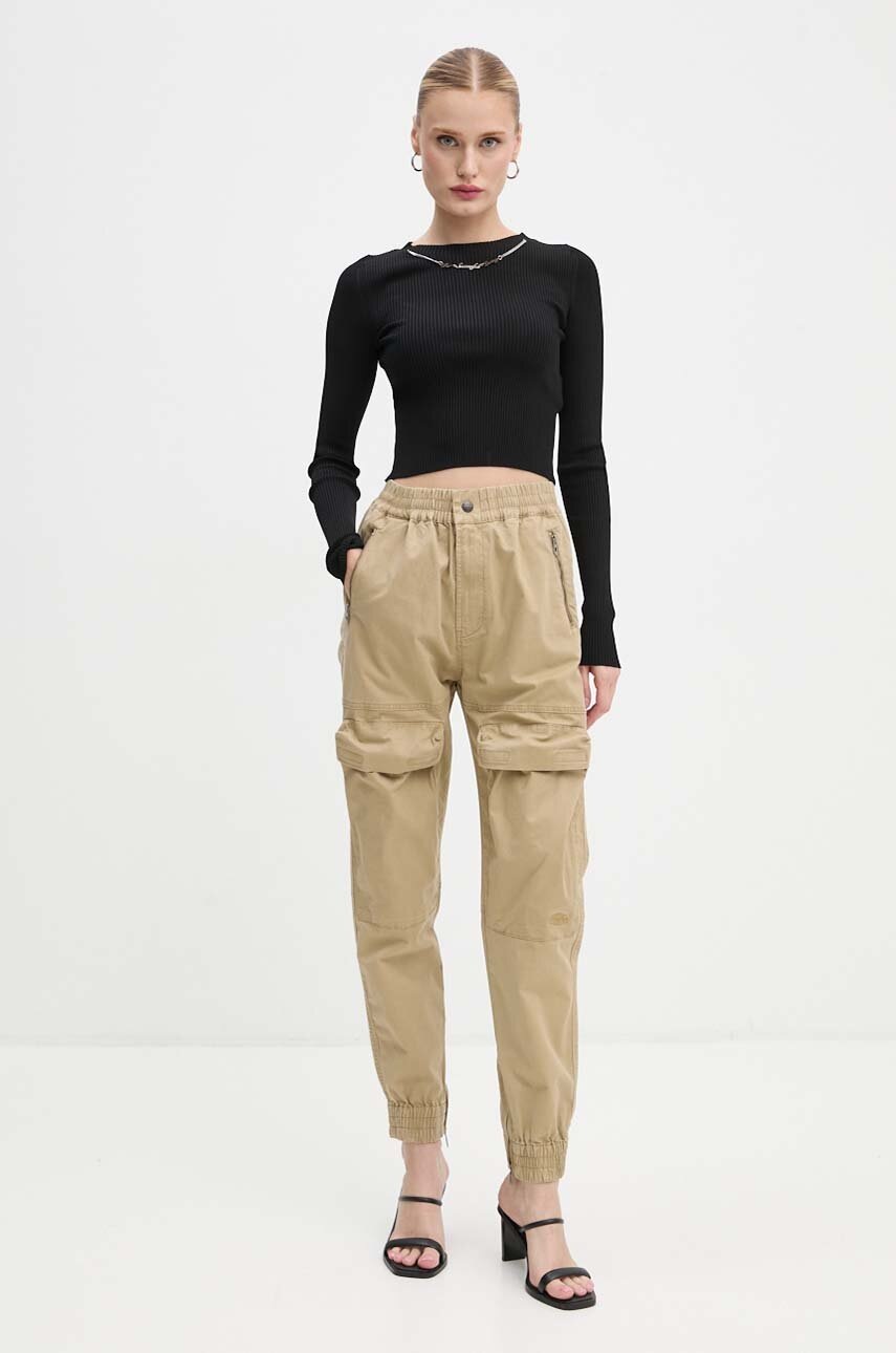 Diesel spodnie P-RIDE damskie kolor beżowy high waist A14539.0SKAM