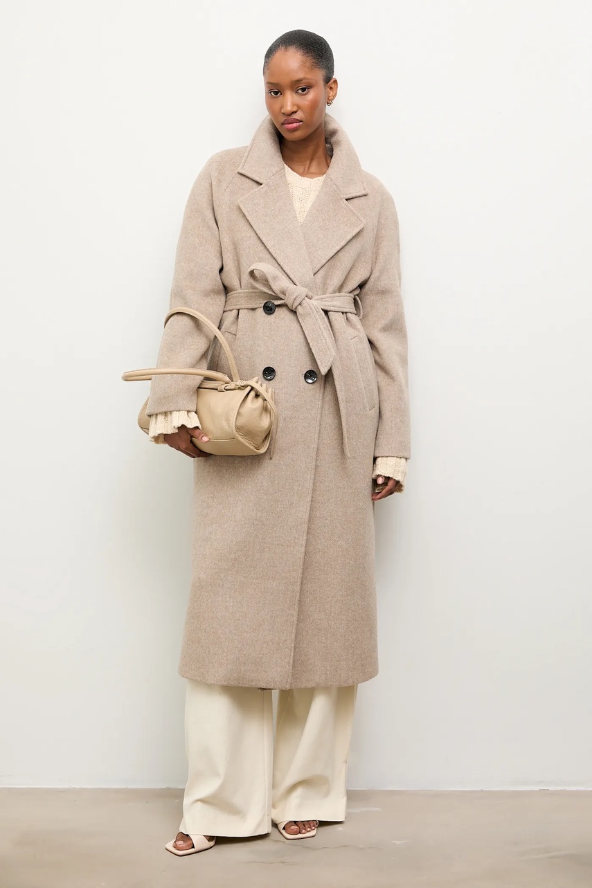 Answear Lab płaszcz wełniany kolor brązowy przejściowy dwurzędowy