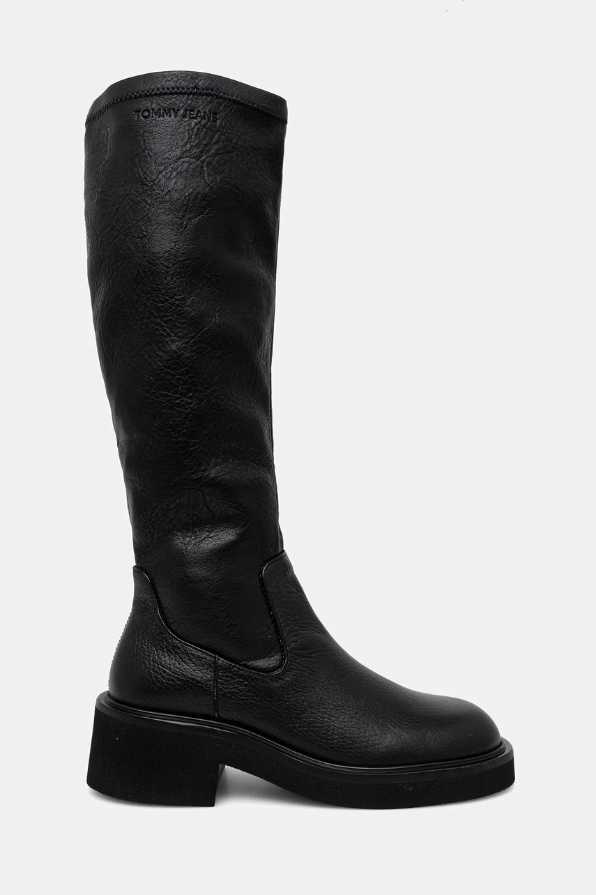 Tommy Jeans kozaki TJW STRETCHY LONG BOOT damskie kolor czarny na słupku EN0EN02851
