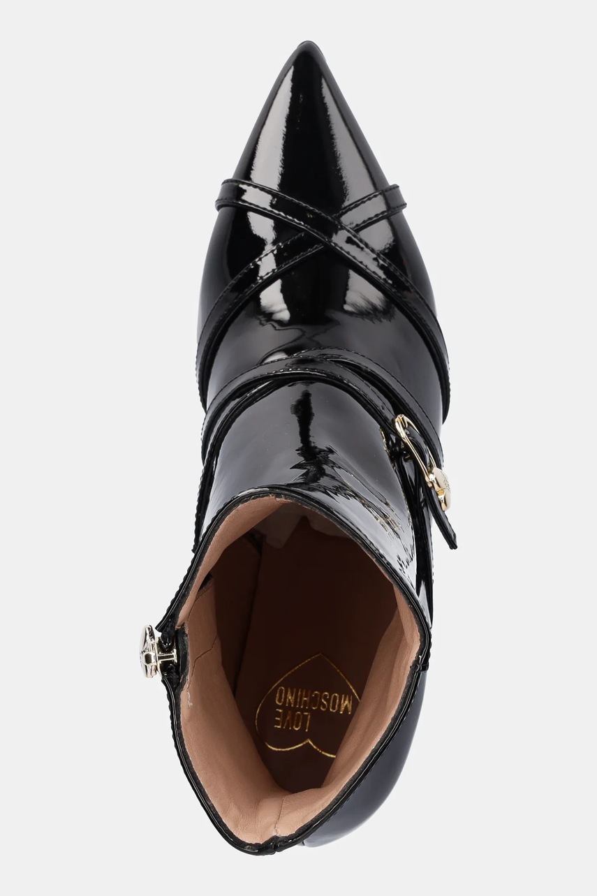 Love Moschino botki skórzane damskie kolor czarny na szpilce JA21047G1NIH0000