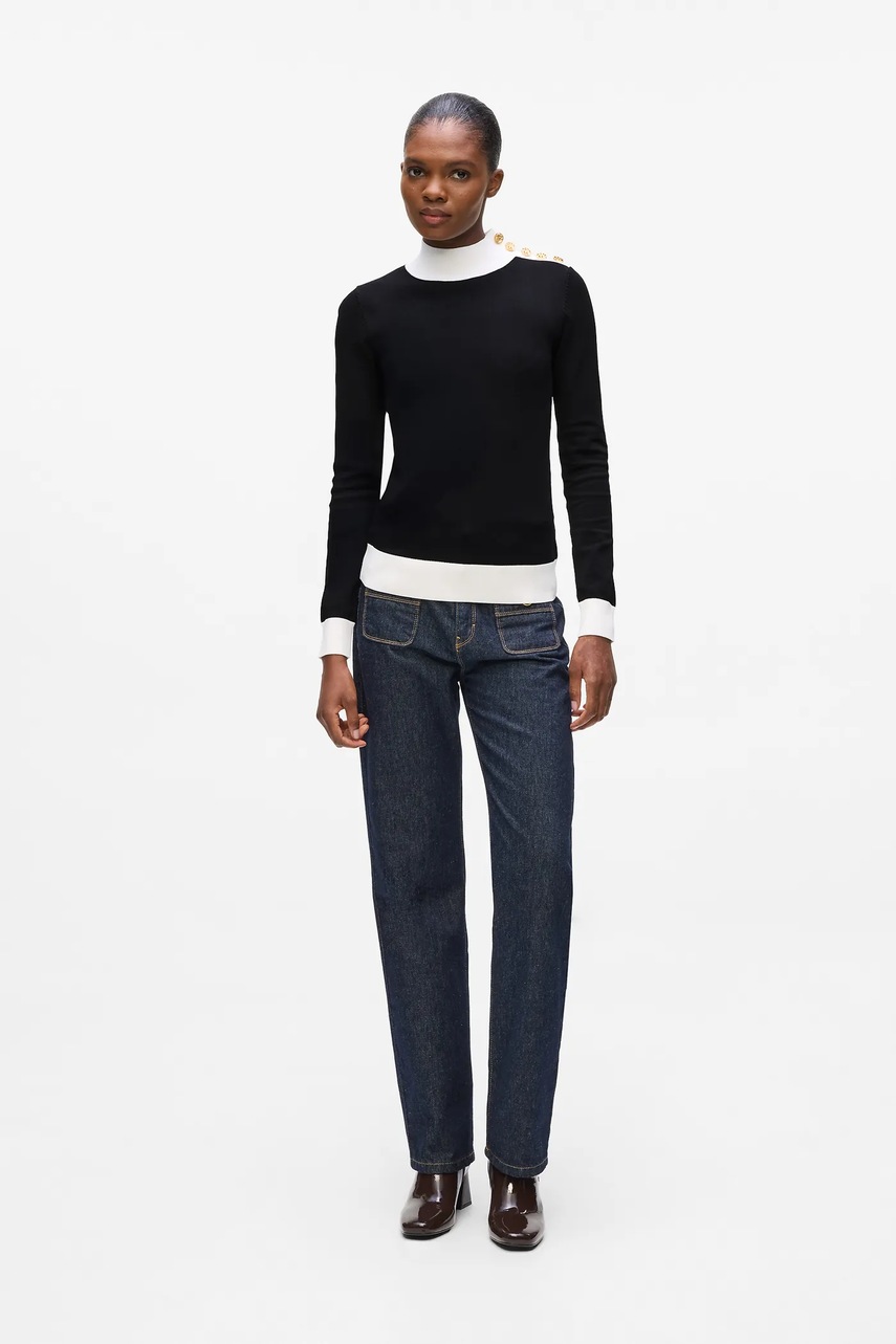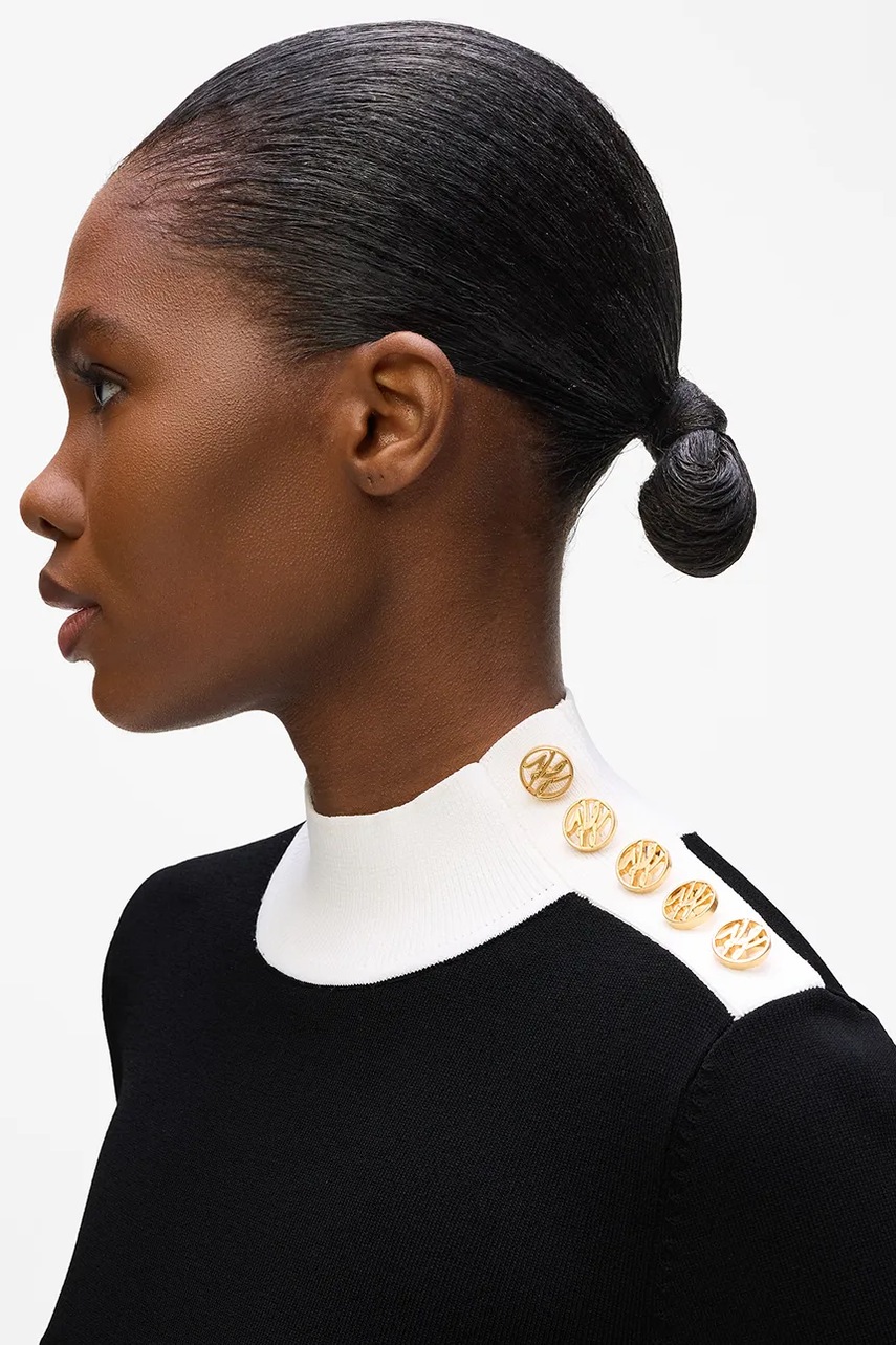 Karl Lagerfeld sweter damski kolor czarny lekki z półgolfem A4W18038