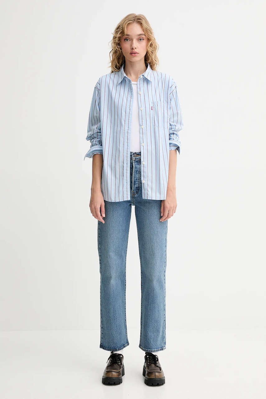 Levi's koszula bawełniana damska kolor niebieski relaxed z kołnierzykiem klasycznym 001HM