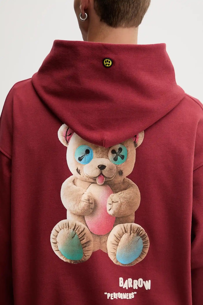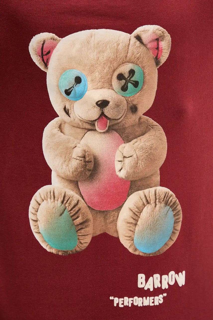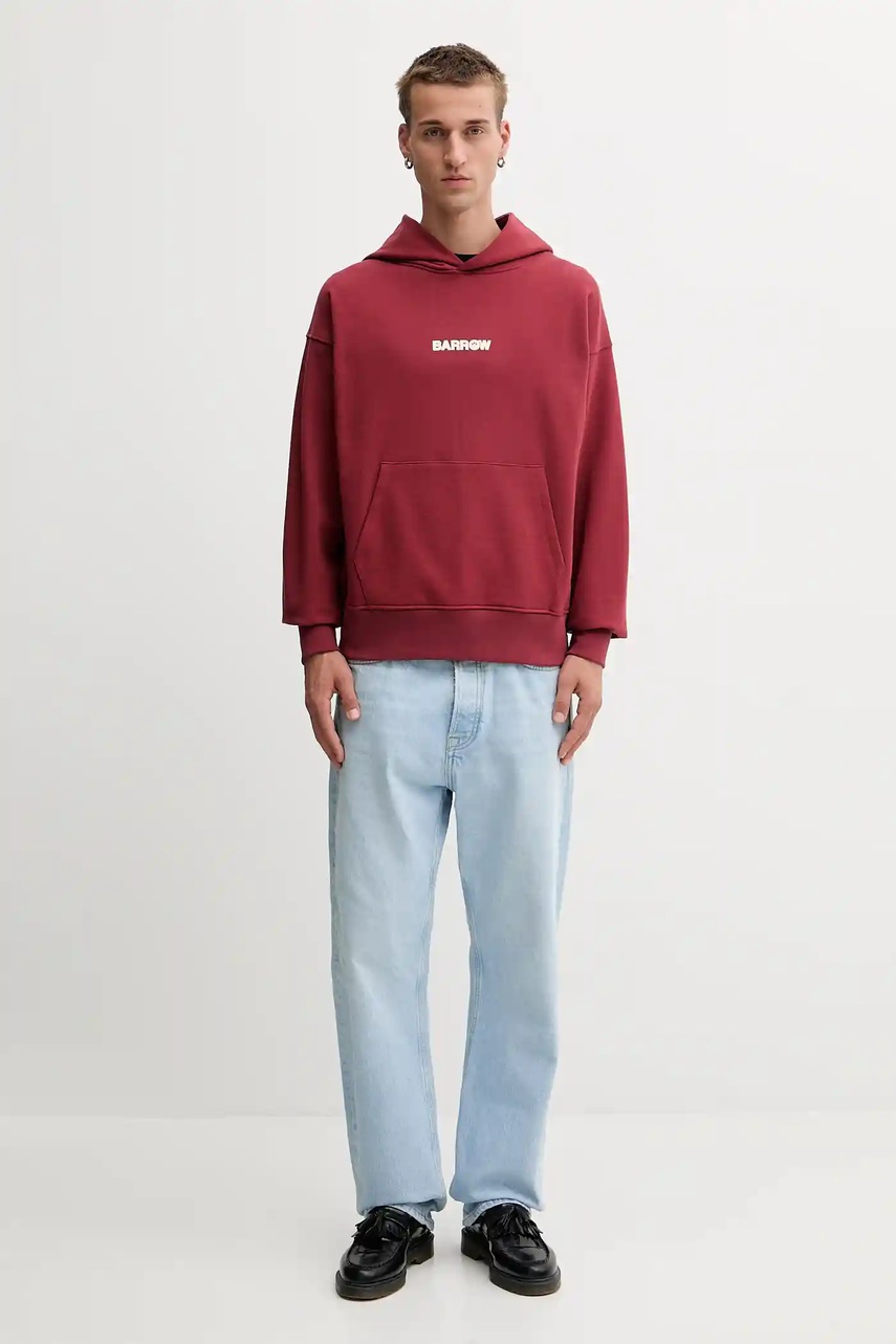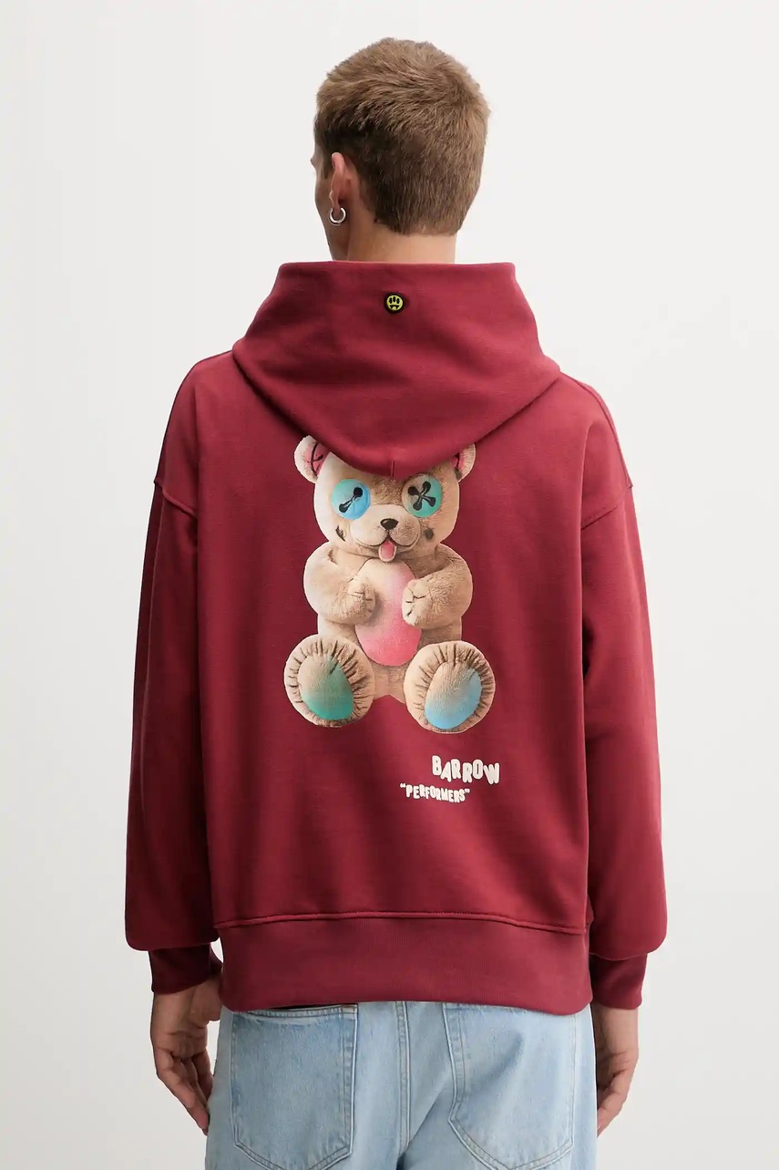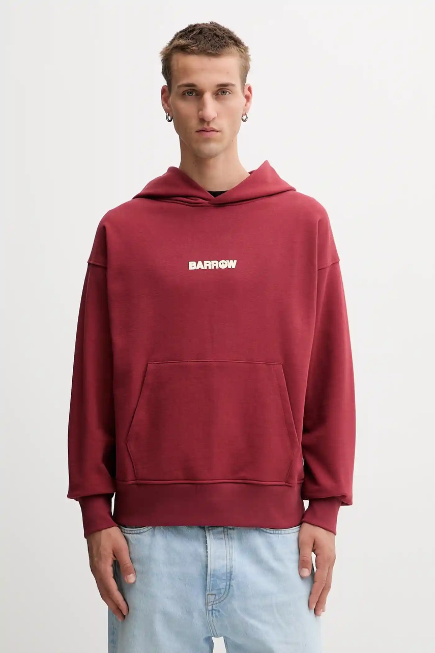 Barrow bluza bawełniana kolor bordowy z kapturem wzorzysta F5BWUAHS047