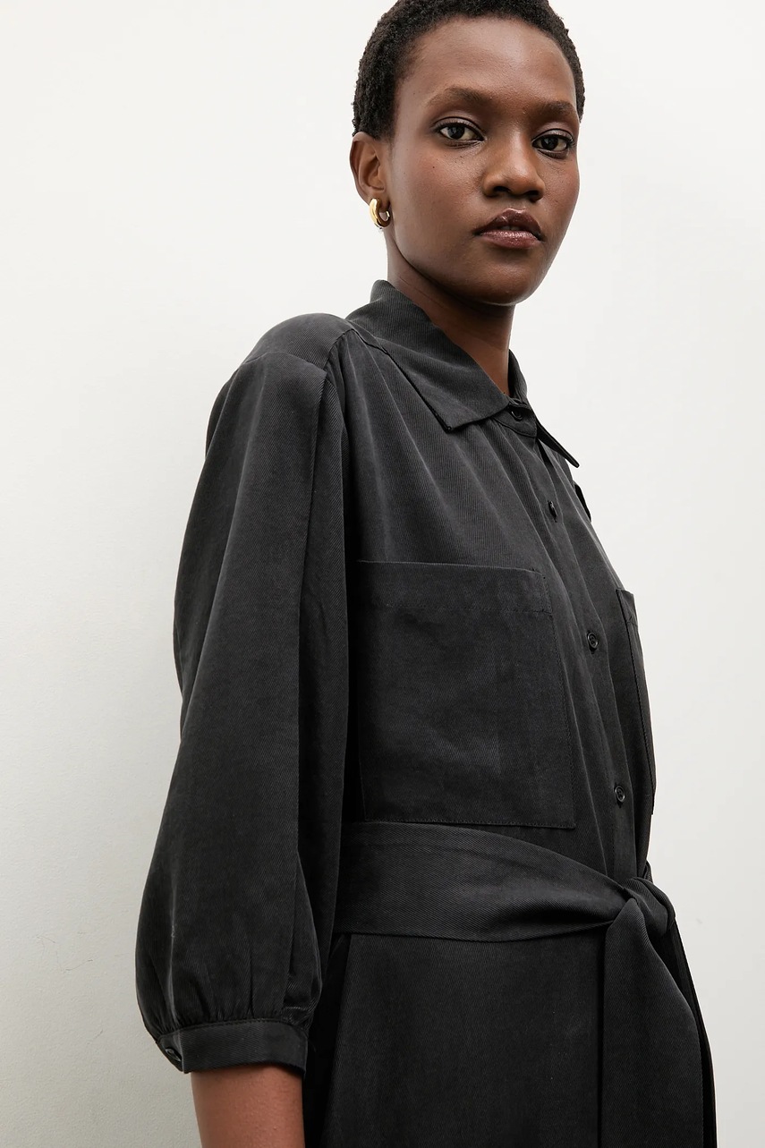 - Luźny krój z opuszczoną linią ramion.