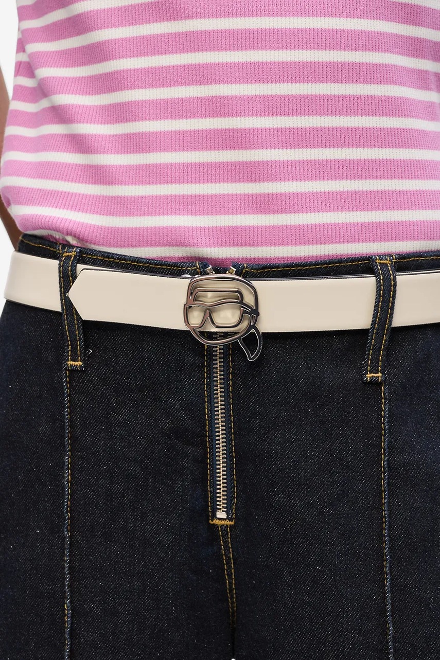 Karl Lagerfeld pasek skórzany dwustronny IKON damski kolor beżowy A4W33048