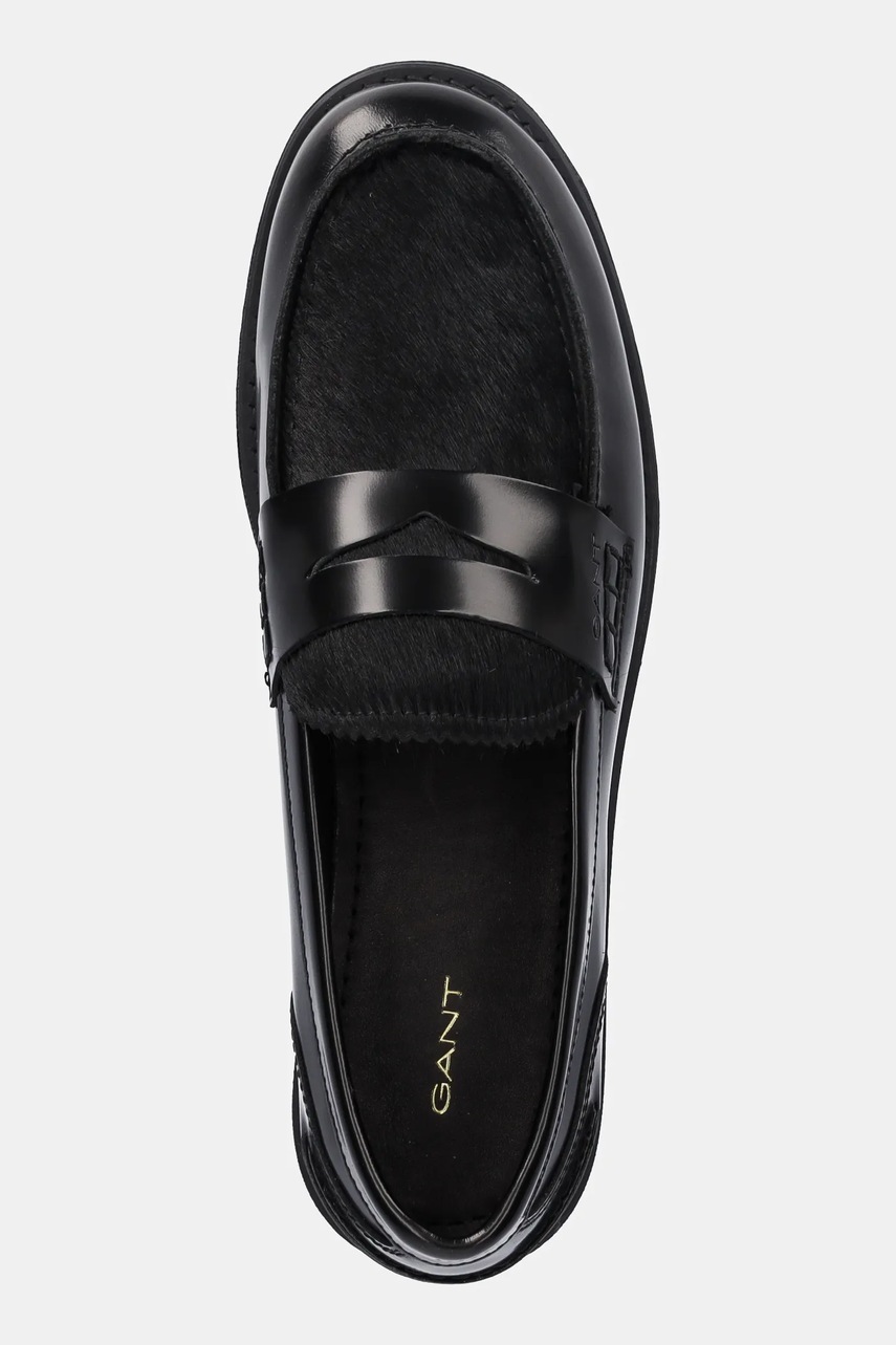 Gant mokasyny skórzane Gracelyn damskie kolor czarny na płaskim obcasie 31571060