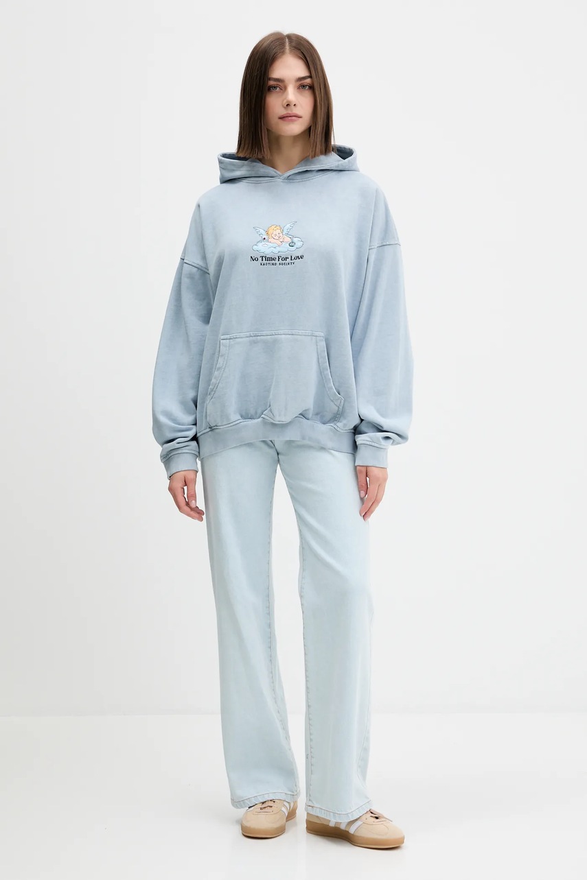 Kaotiko bluza bawełniana kolor niebieski z kapturem z aplikacją AR014-02-G002