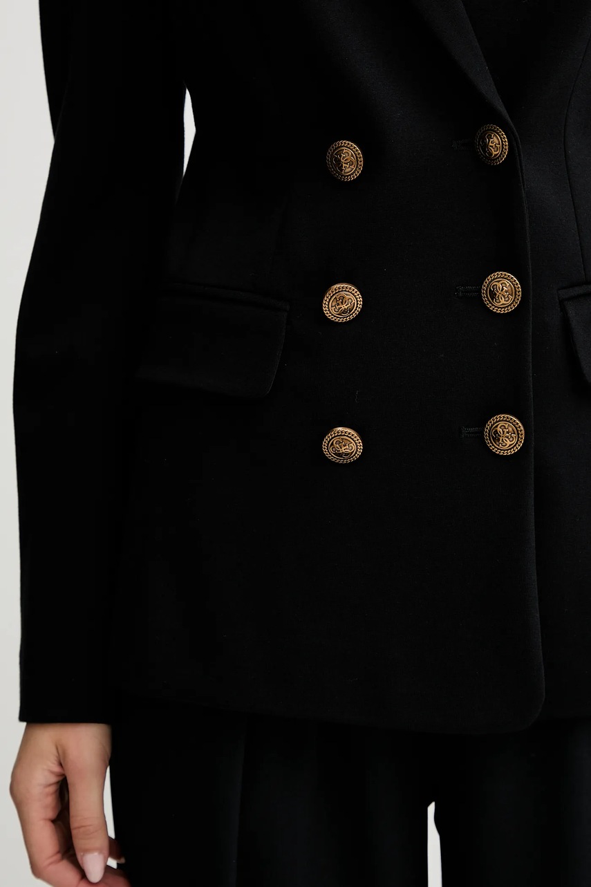 Guess marynarka MAELICE kolor czarny dwurzędowa gładka W5YN39 KCMU2