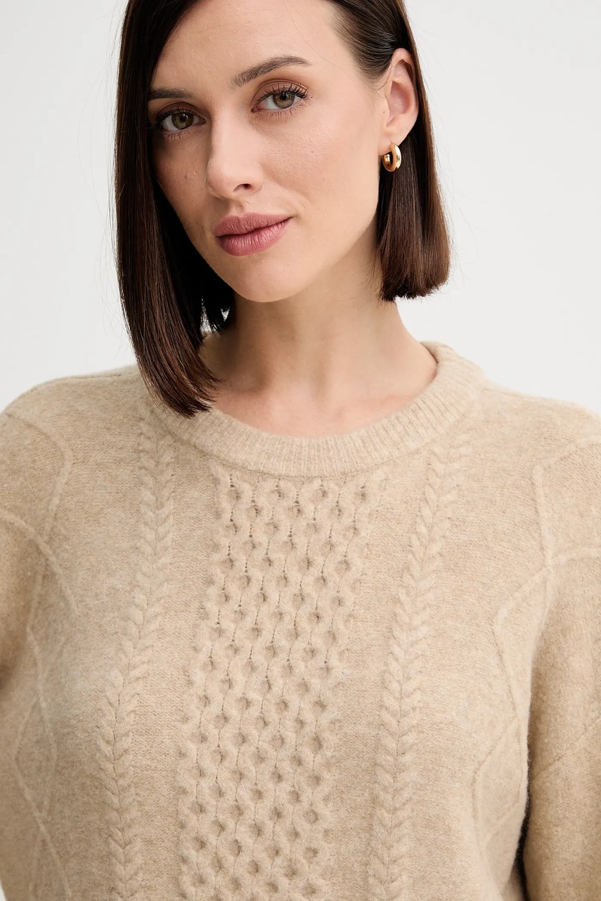 - Sweter w fasonie oversize zapewnia komfort i swobodę ruchów. Pasuje do różnych stylów, podkreślając casualowy charakter stylizacji.