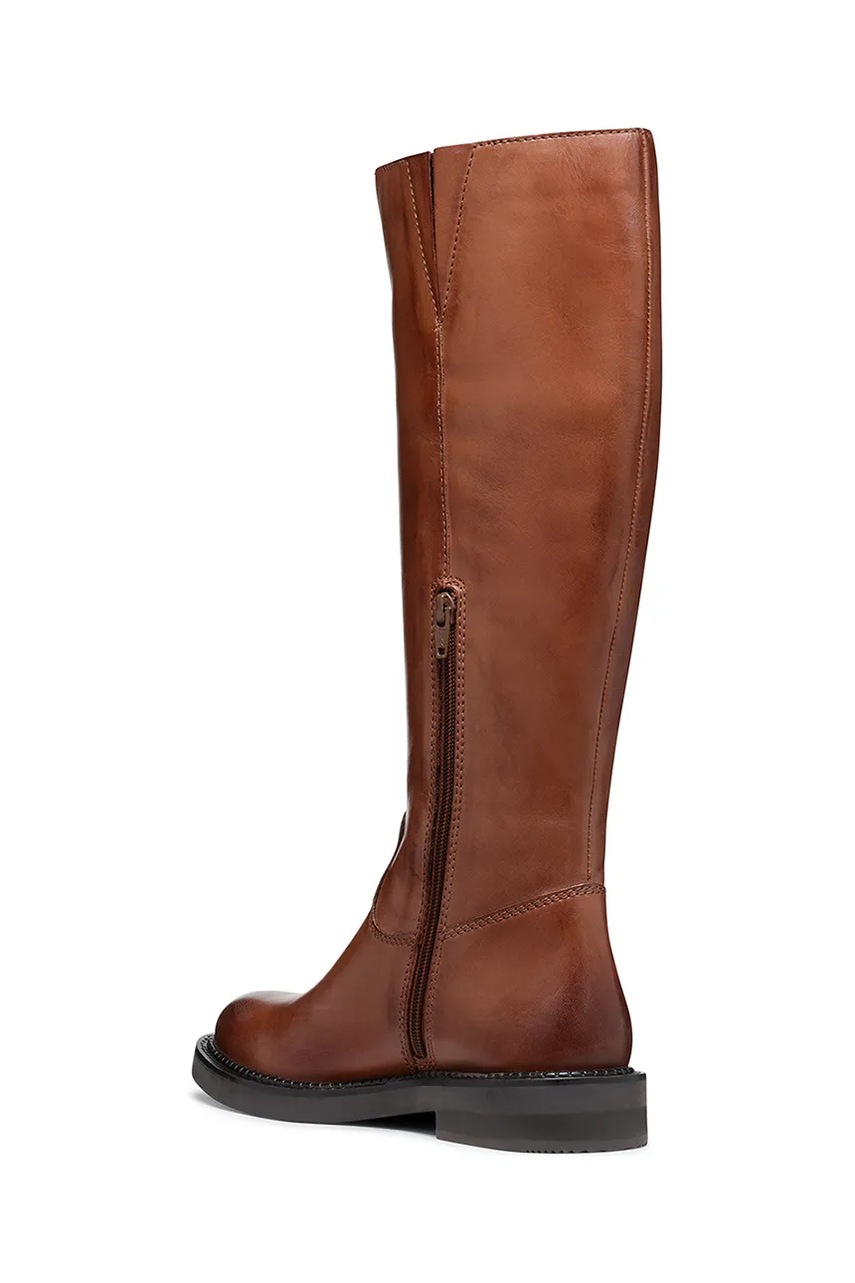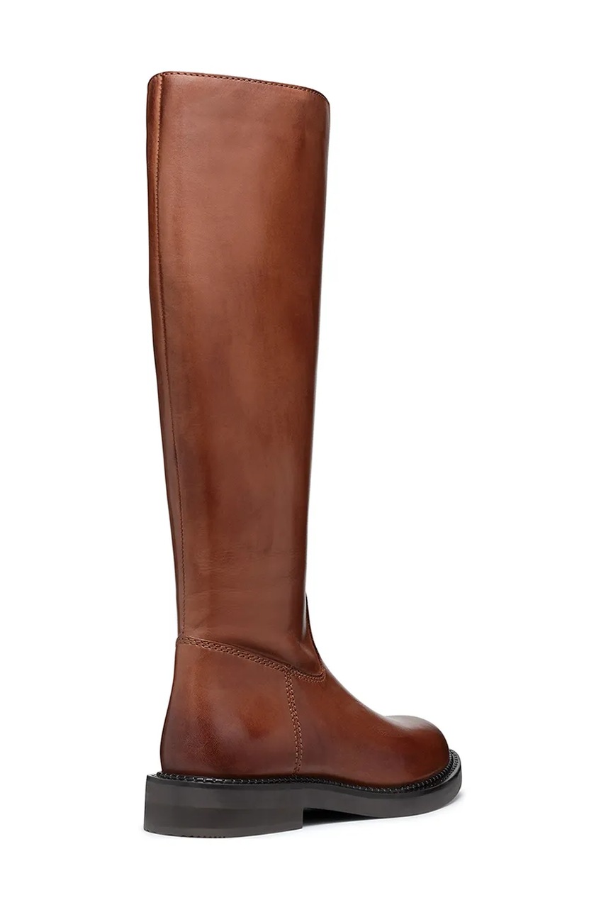 Geox kozaki skórzane D SERILDA damskie kolor brązowy na płaskim obcasie D46WYA 00043 C6002