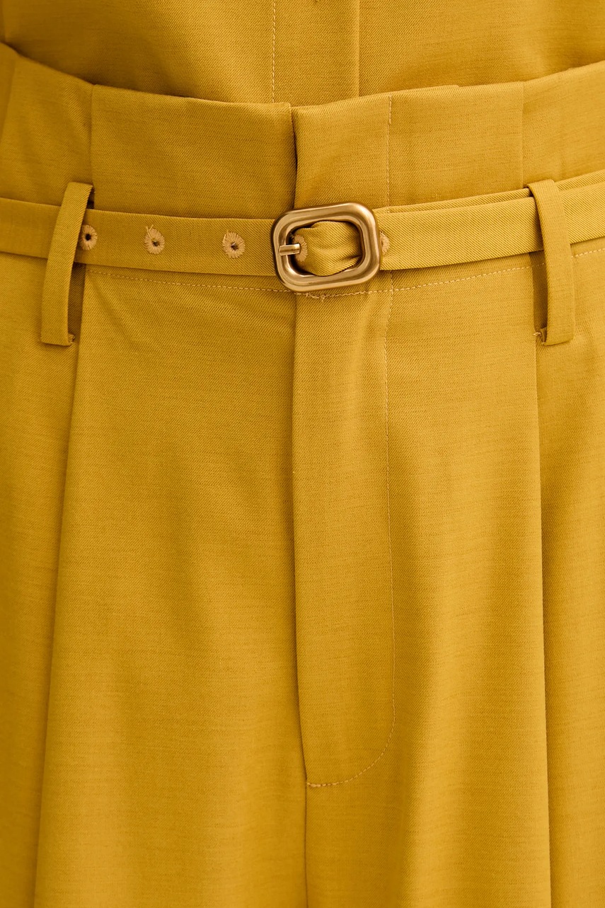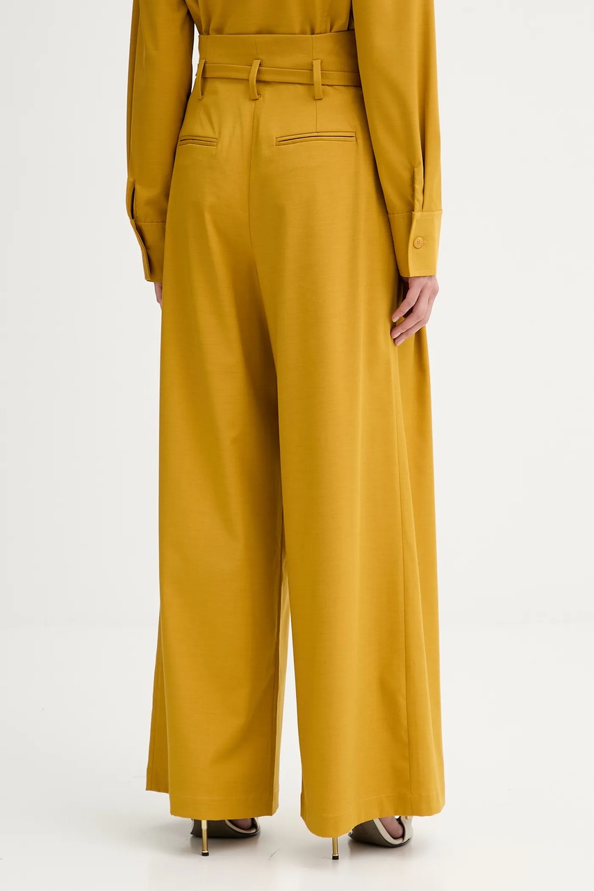 ISABELLE BLANCHE spodnie z domieszką wełny damskie kolor żółty proste high waist IS25FW-P036-T002