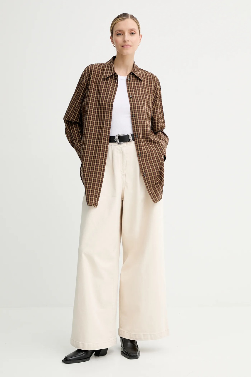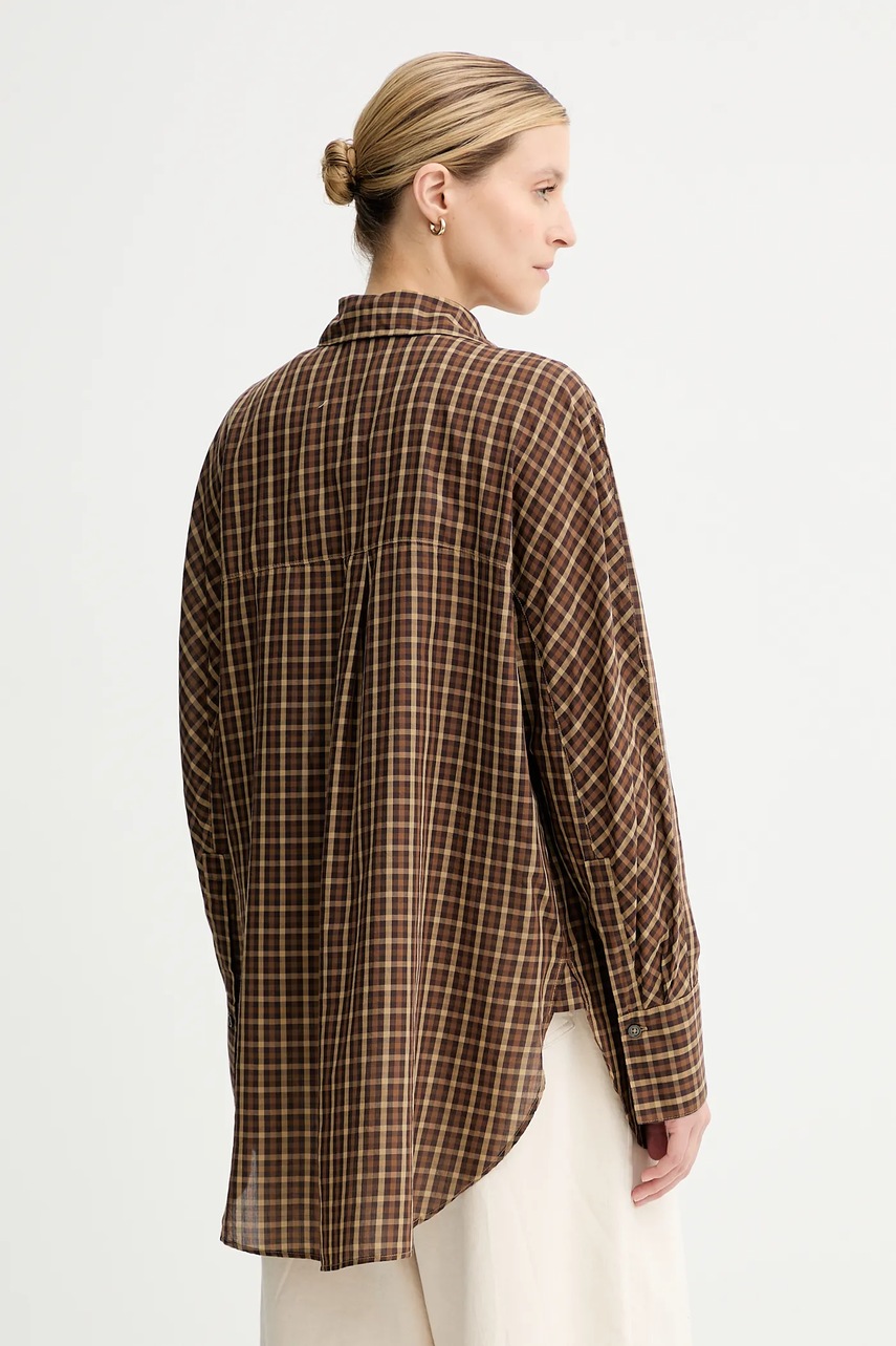 Marc O'Polo koszula bawełniana damska kolor brązowy relaxed z kołnierzykiem klasycznym 508106242155
