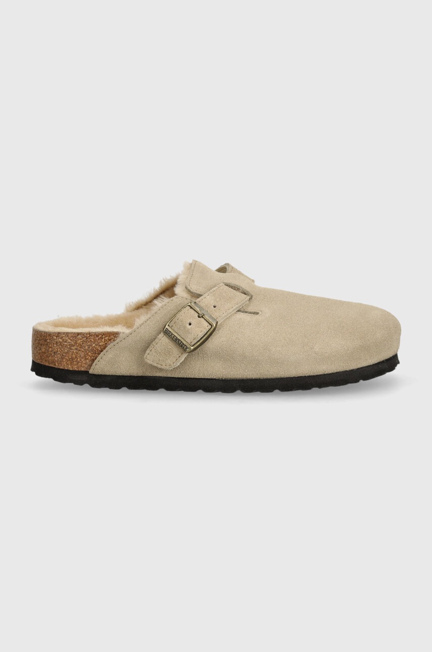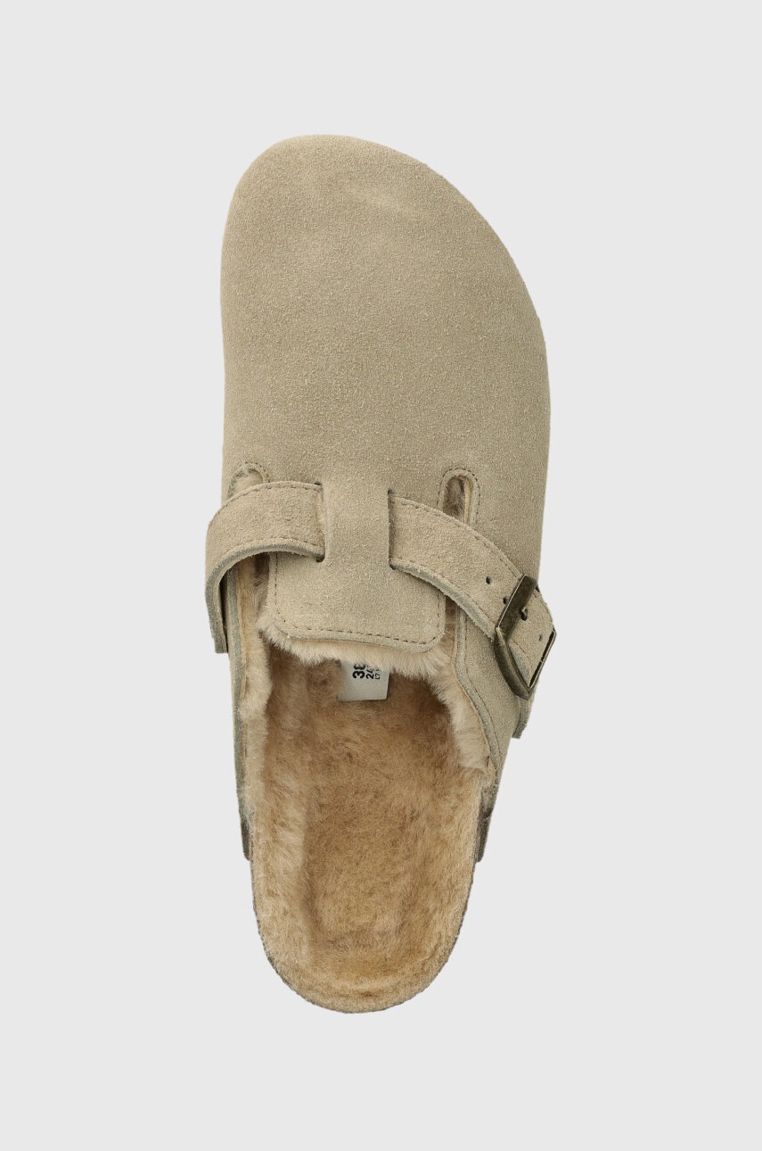 Birkenstock klapki zamszowe Boston Shearling damskie kolor beżowy 1028299