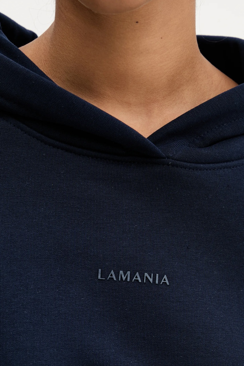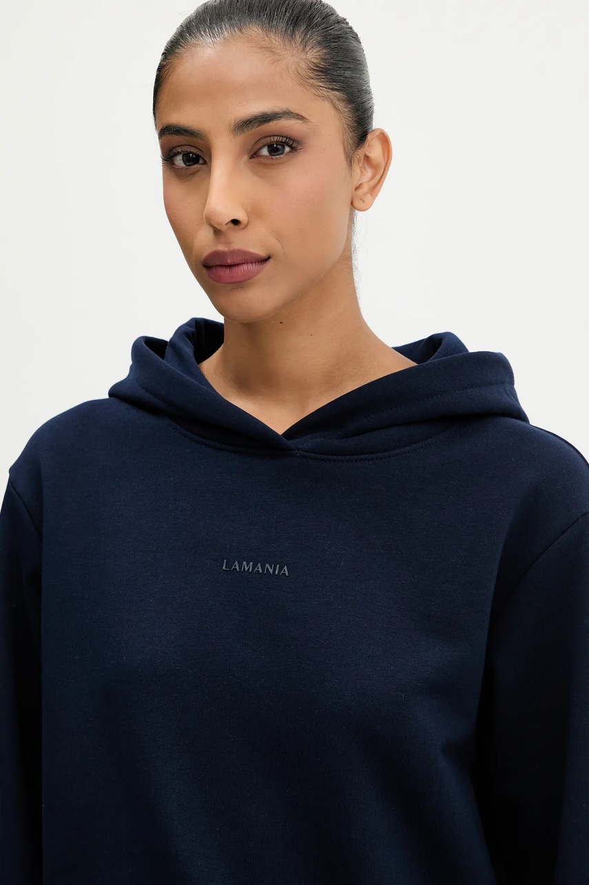 La Mania bluza ALI damska kolor granatowy z kapturem gładka ALI