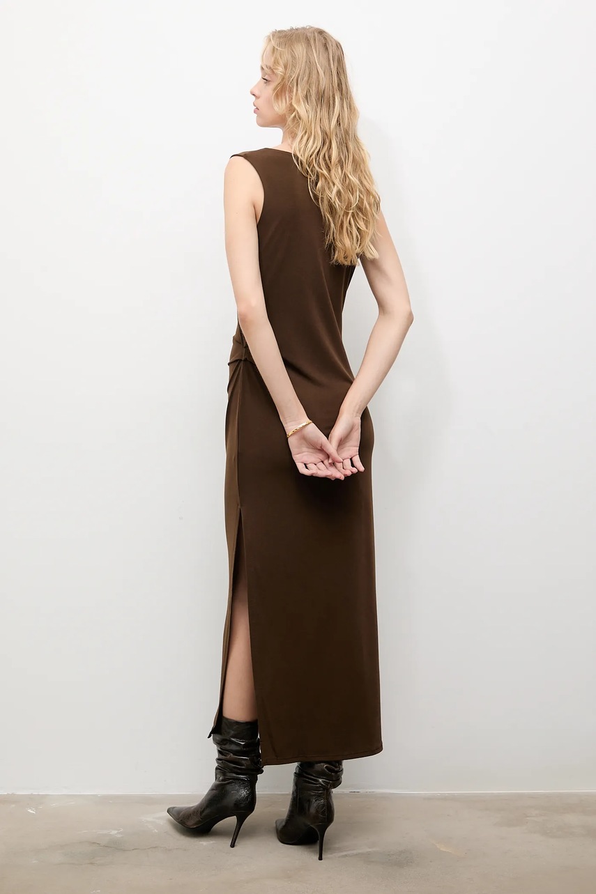 Answear.LAB sukienka kolor brązowy maxi prosta