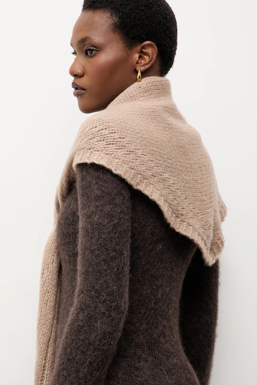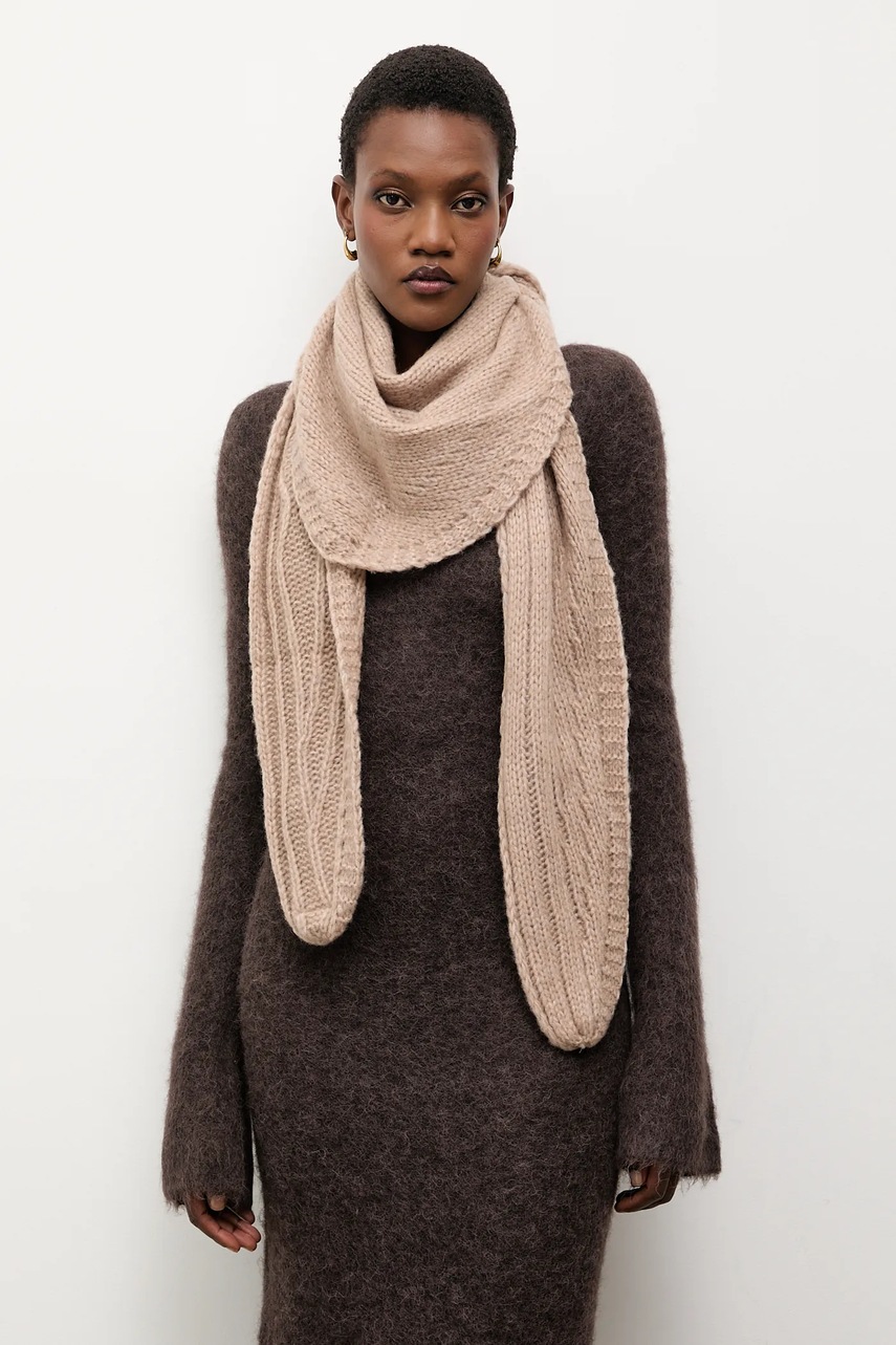 Answear.LAB szalik z wełną merino damski kolor beżowy gładki