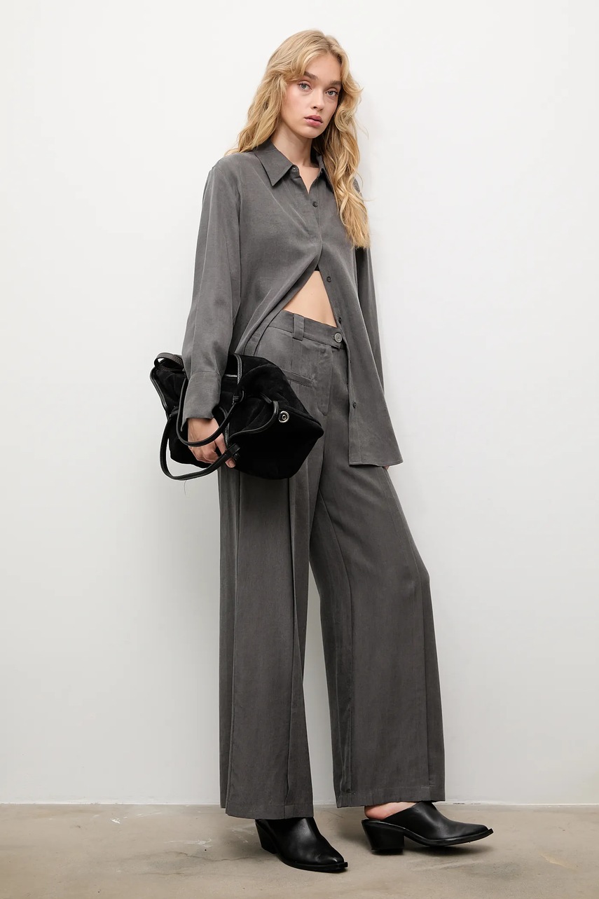 Answear.LAB koszula damska kolor szary relaxed z kołnierzykiem klasycznym