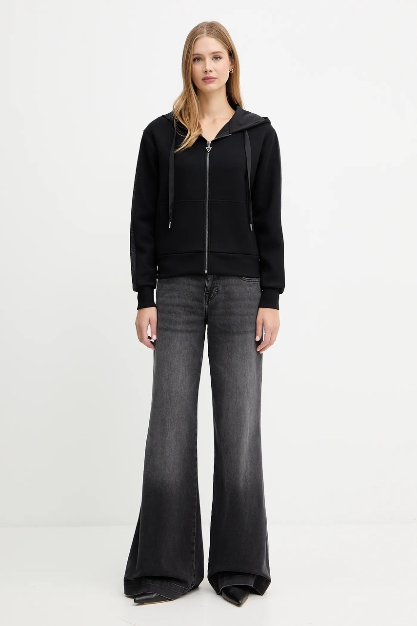 Guess bluza damska kolor czarny z kapturem z aplikacją W5YQ05 KBYE2