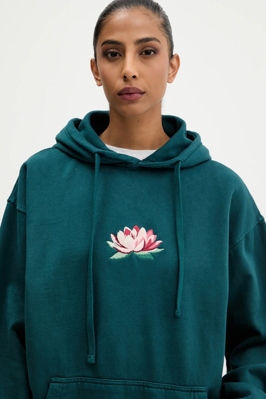 Kaotiko bluza bawełniana kolor zielony z kapturem z aplikacją AR074-01-G002
