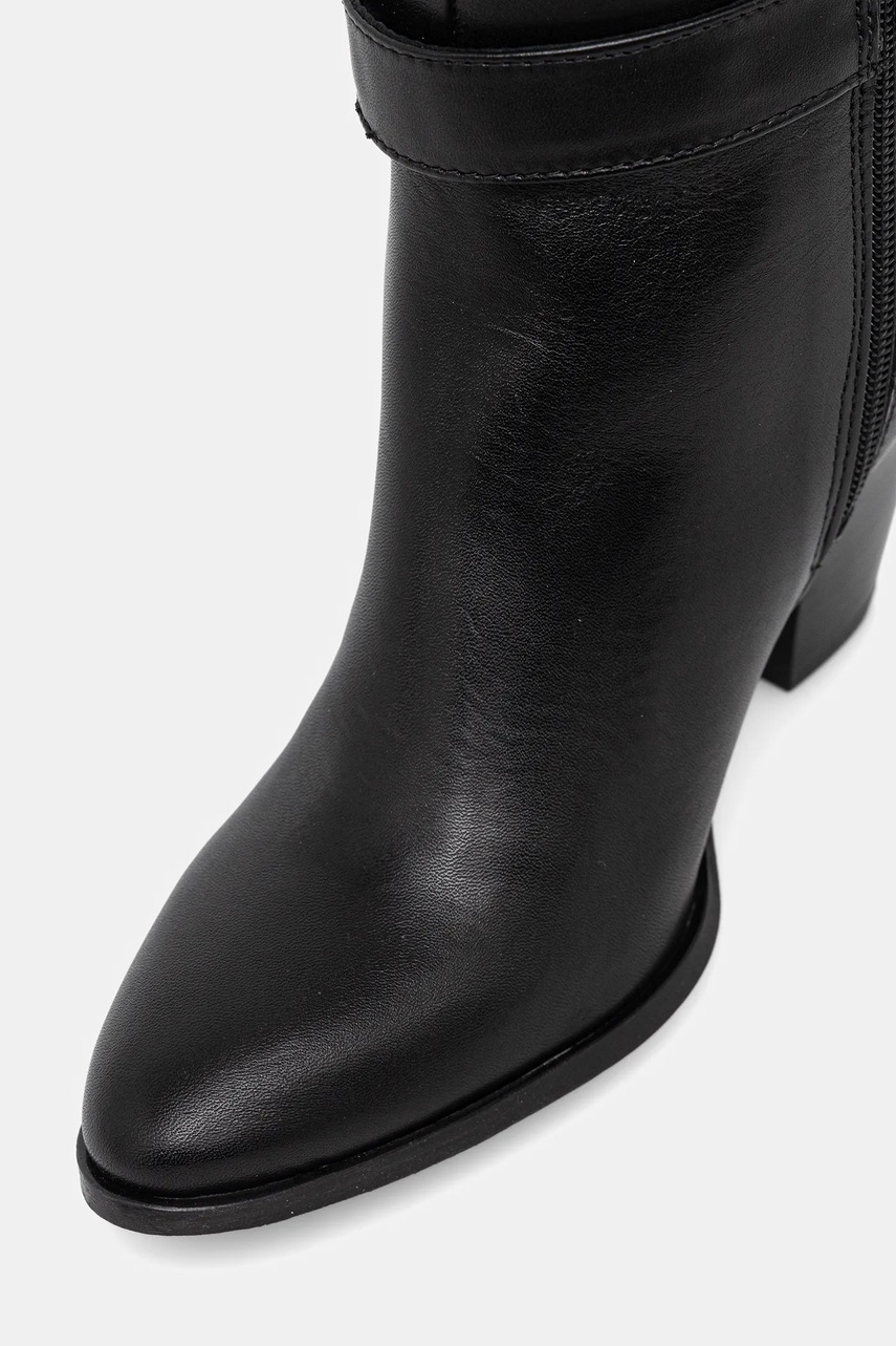 Tommy Hilfiger kozaki skórzane TH T-STRAP LTHR POINTY LONG BOOT damskie kolor czarny na słupku FW0FW08982