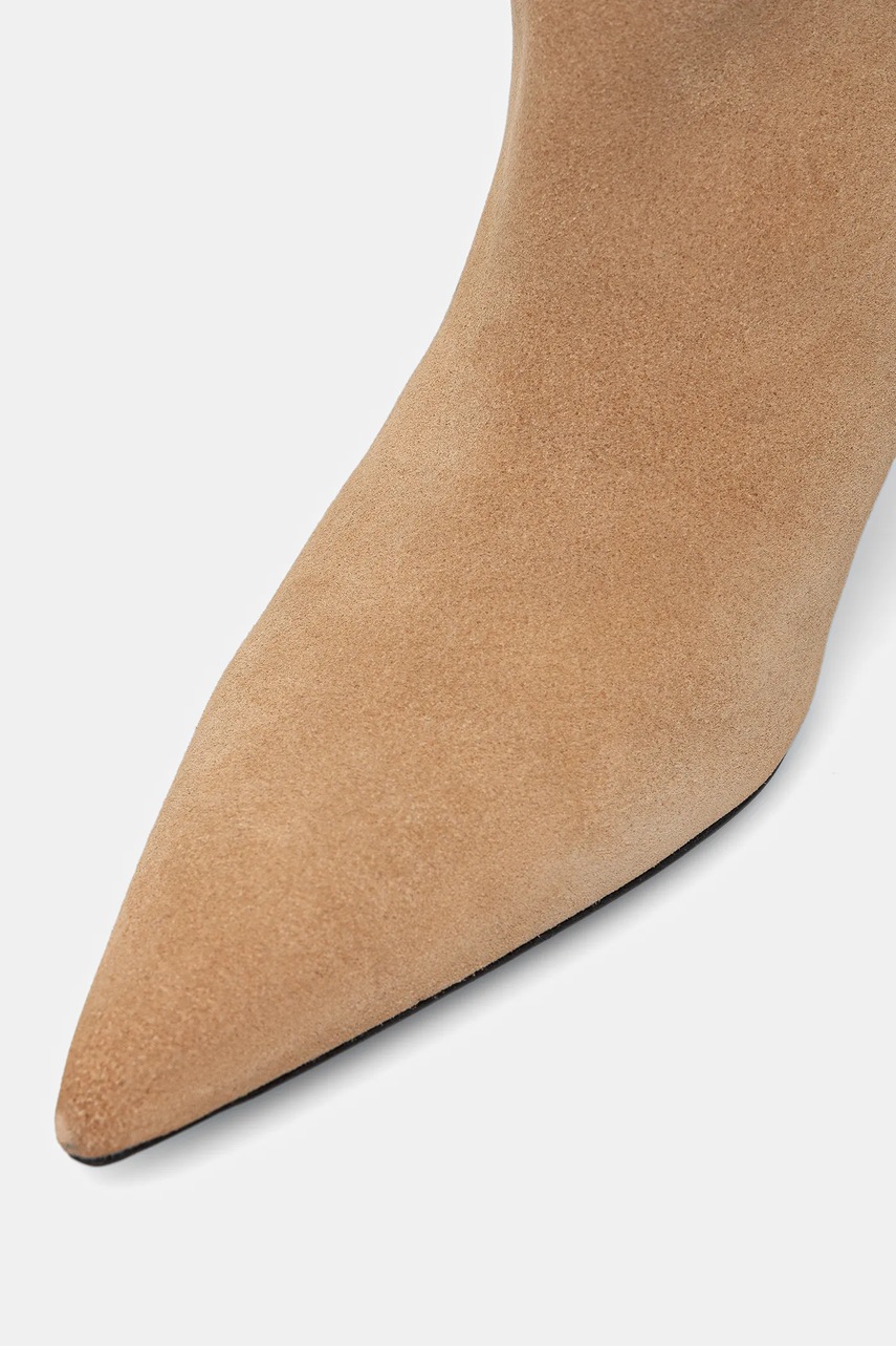 Patrizia Pepe kozaki zamszowe damskie kolor beżowy na szpilce 8Y0138 L033 B768