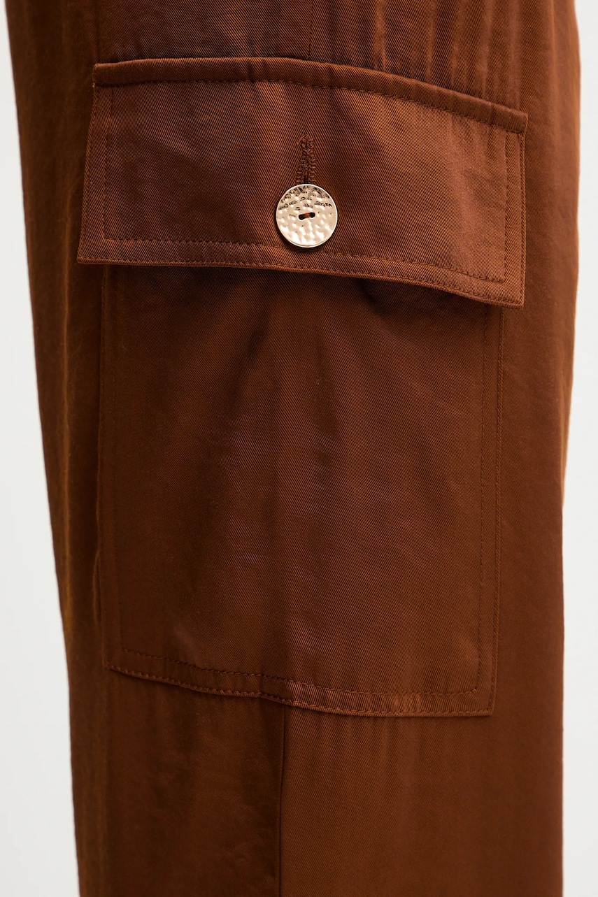 Morgan spodnie damskie kolor brązowy szerokie high waist PVIRA.F