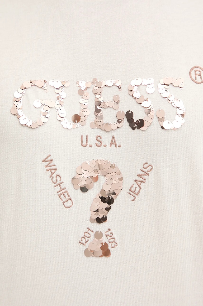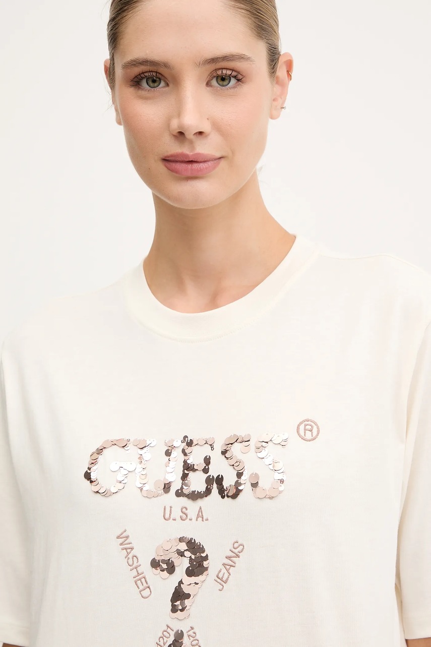 Guess t-shirt bawełniany AURLIE damski kolor beżowy V4YI06 I3Z14