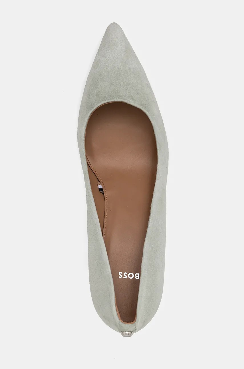 BOSS czółenka zamszowe Janet kolor zielony na słupku 50503640