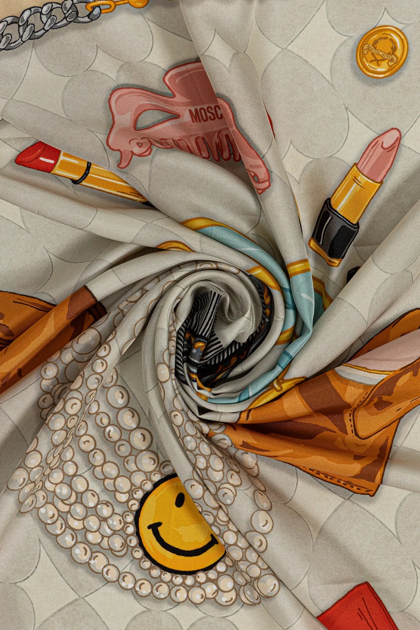 Moschino apaszka jedwabna damska kolor szary wzorzysta M3285 3549