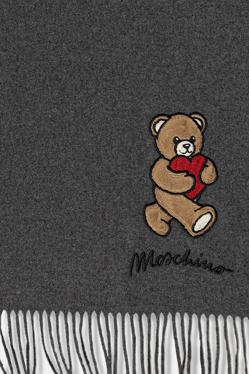 Moschino szalik wełniany kolor szary z aplikacją M3330 30835