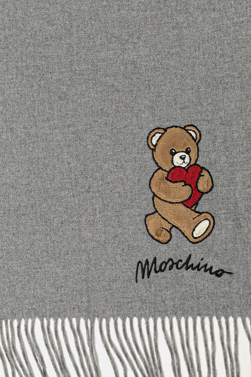 Moschino szalik wełniany kolor szary z aplikacją M3330 30835