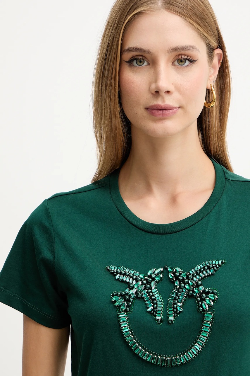 Pinko t-shirt bawełniany damski kolor zielony 100535 A2RN