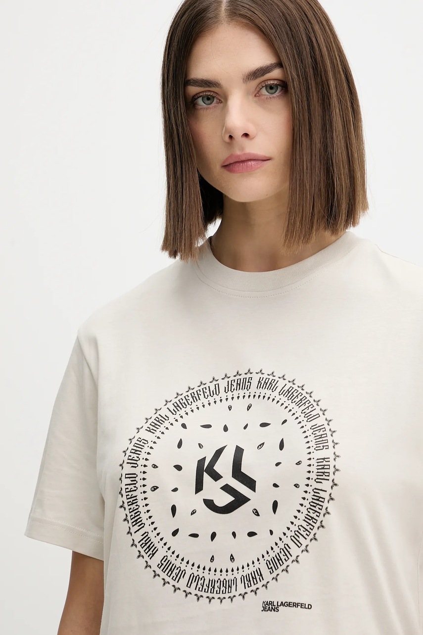 Karl Lagerfeld Jeans t-shirt bawełniany damski kolor beżowy A4W17008